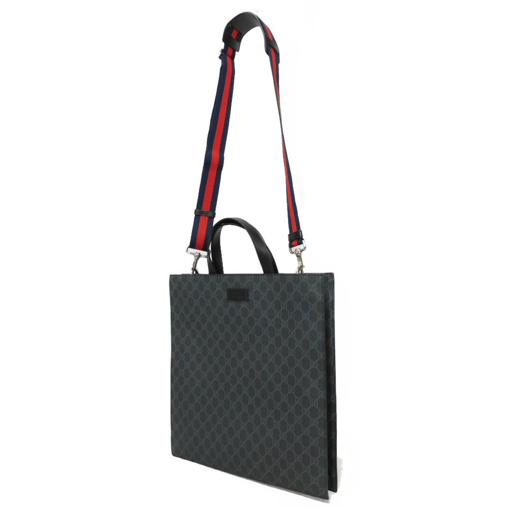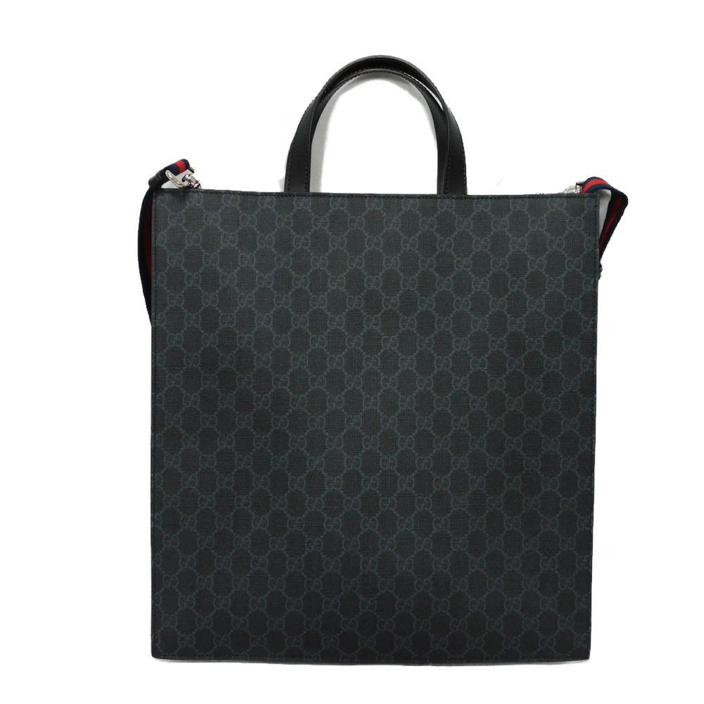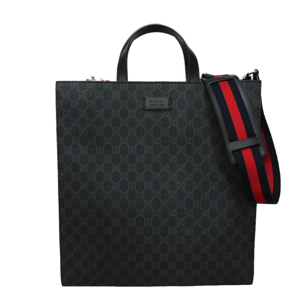 Pre-owned Gucci Web Stripe Tote Bag with Logo, 2-Way Shoulder Bag, Soft GG Supreme Design, Black, 495559 K5IAN 1095, Men's Bag, Elegant, Luxury, Sophisticated, Brand Name.