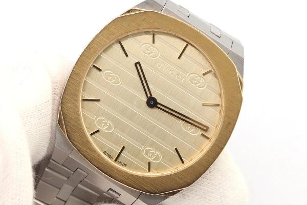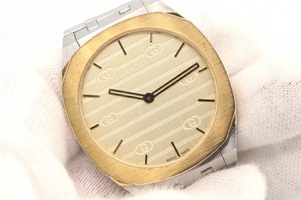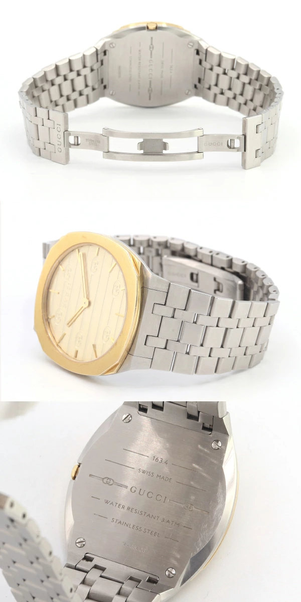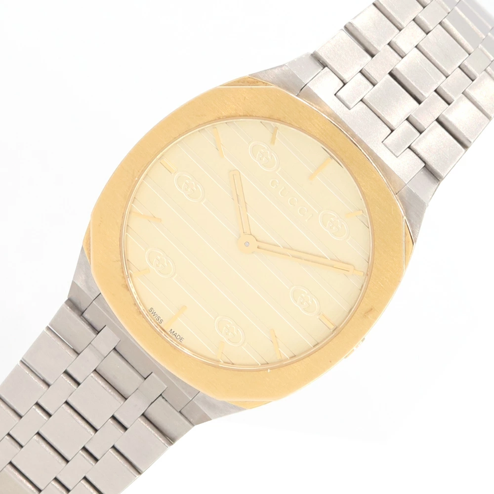 Pre-owned Gucci Women's Watch YA163403 Stainless Steel Quartz Watch, Two-tone GG Slim, Unisex, GUCCI | Women's Watch, Designer Watch, Designer Watch, Wristwatch, Stylish Analog Silver Watch for Men