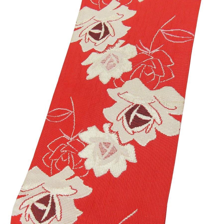 品名【中古】 半幅帯 正絹(金銀糸除く) 金糸 レッド ホワイト ゴールド お洒落 レディース 女性