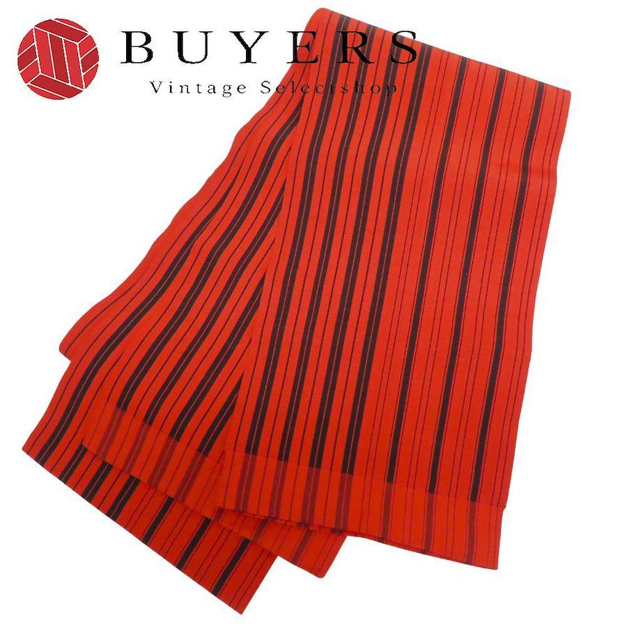 | 品名 | 【中古】 半幅帯 正絹 レッド ブラック 縞 モダン おしゃれ レディース 女性 |