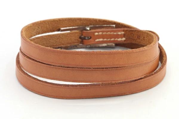 | サイズ | レザー全長:約69cm レザー幅:約7.7mm バックル:約3.1×1.2cm 3重(内周):約19〜20.5cm 4重(内周):約13.5〜14.5cm 重さ:約10.9g ※多少の誤差はご了承ください。 |