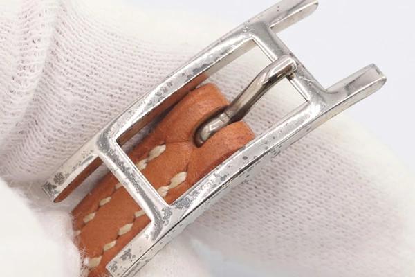 | 状態 | 外側:革馴染み・スレ汚れ・ヌレ染み、一部黒ずみ汚れあり。 内側:スレ・汚れ・毛羽立ちあり。 金具:キズ・スレ・酸化・黒ズミ変色あり。 |