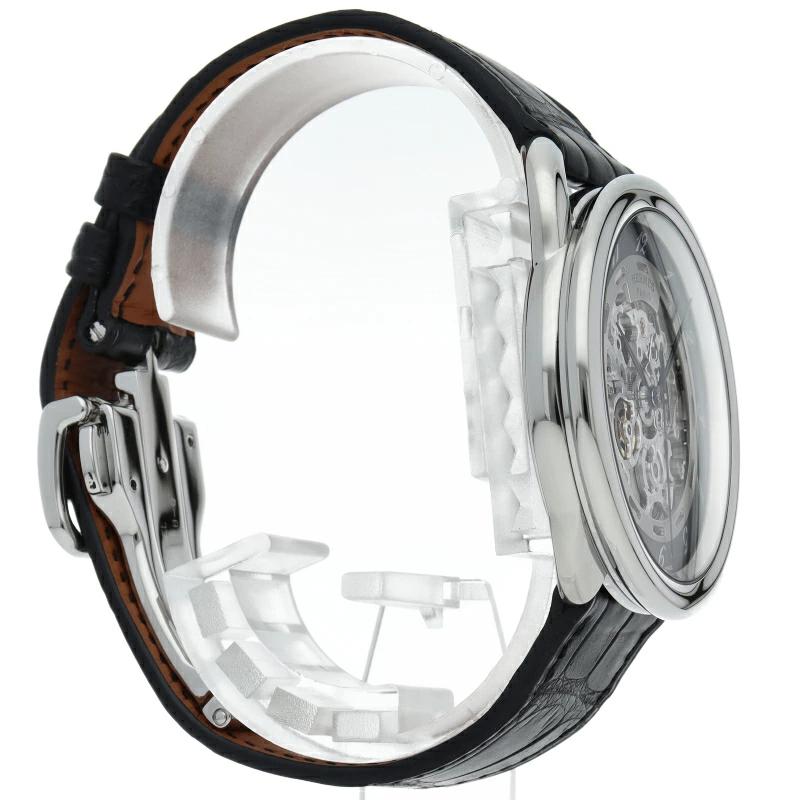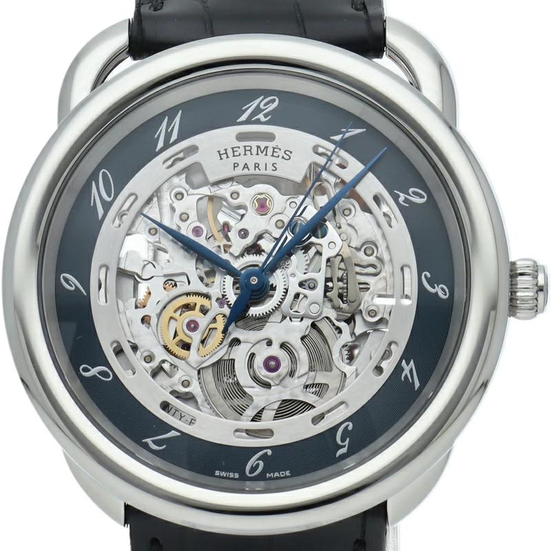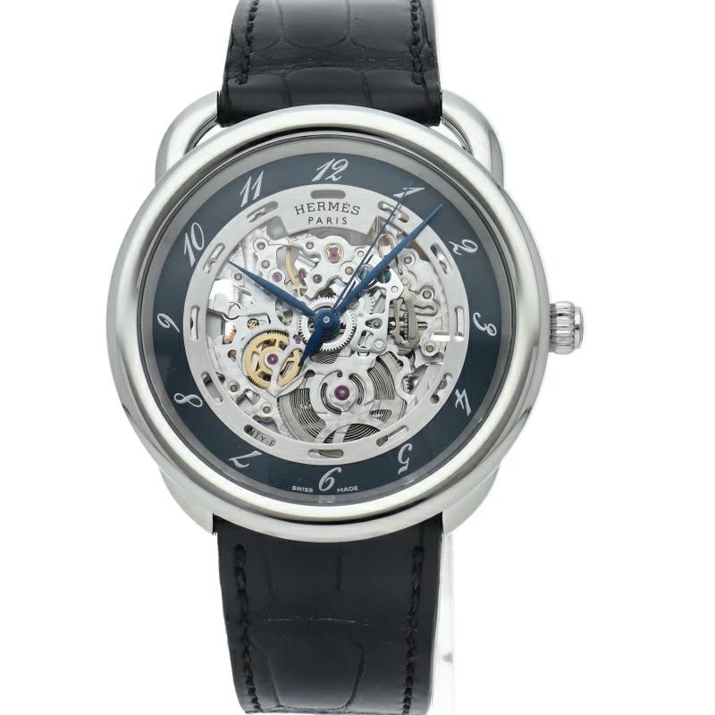 | 世界中で人気のセレブブランド「エルメス」。中でも“アルソー”はラウンドのケースに斜体アラビアインデックスというオーソドックスながら上品なデザインが特徴のモデルです。こちらのモデルはアルソーの基本的なデザインを踏襲しつつ、文字盤と裏蓋をスケルトンにしてゼンマイやアンクルの動きを目で楽しめるようになっています。□P刻印。 |