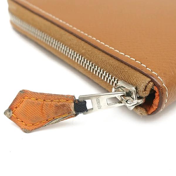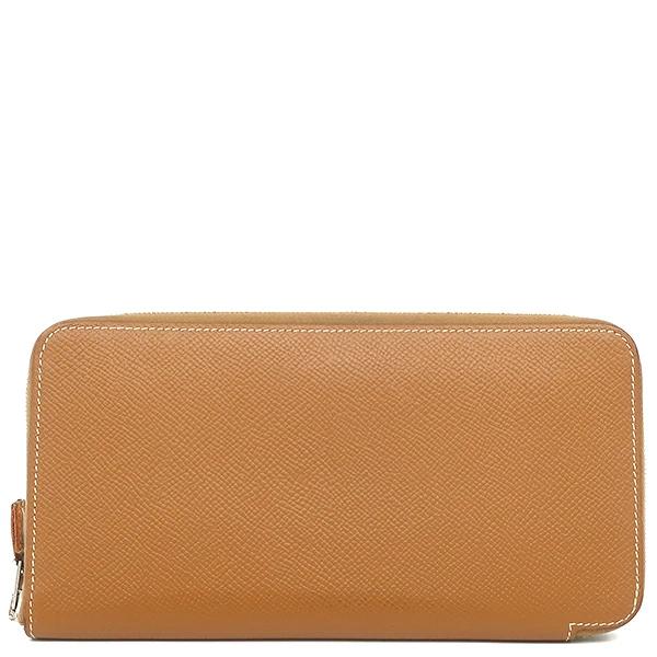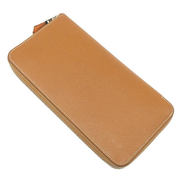 エルメス HERMES アザップロング シルクイン アザップロング 長財布 ヴォーエプソン ゴールド 茶 ラウンドファスナー シルバー金具 □O刻印 - レディース 【中古】