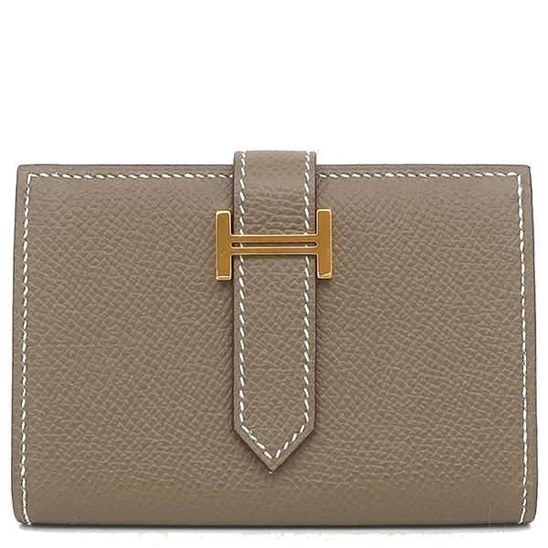 エルメス HERMES ベアンミニ ベアン 二つ折り財布 ヴォーエプソン エトゥープ グレージュ コンパクト財布 コインケース ゴールド金具 Y刻印 - レディース 【保存袋】定番 人気 美品 【中古】