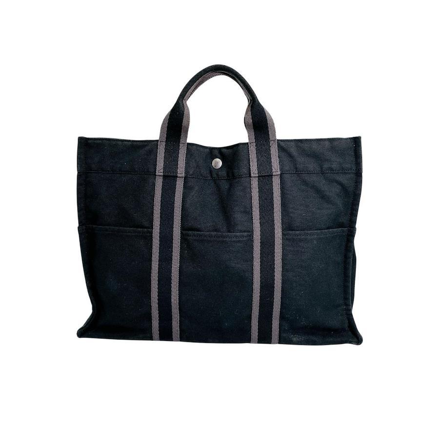 Pre-owned Hermès Canvas Foule Tote MM Handbag in Black.