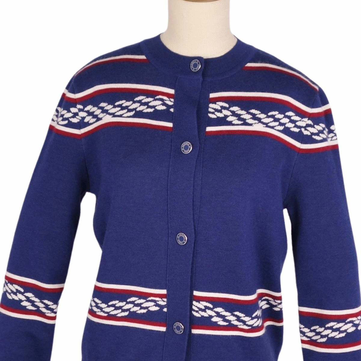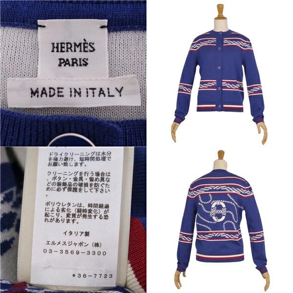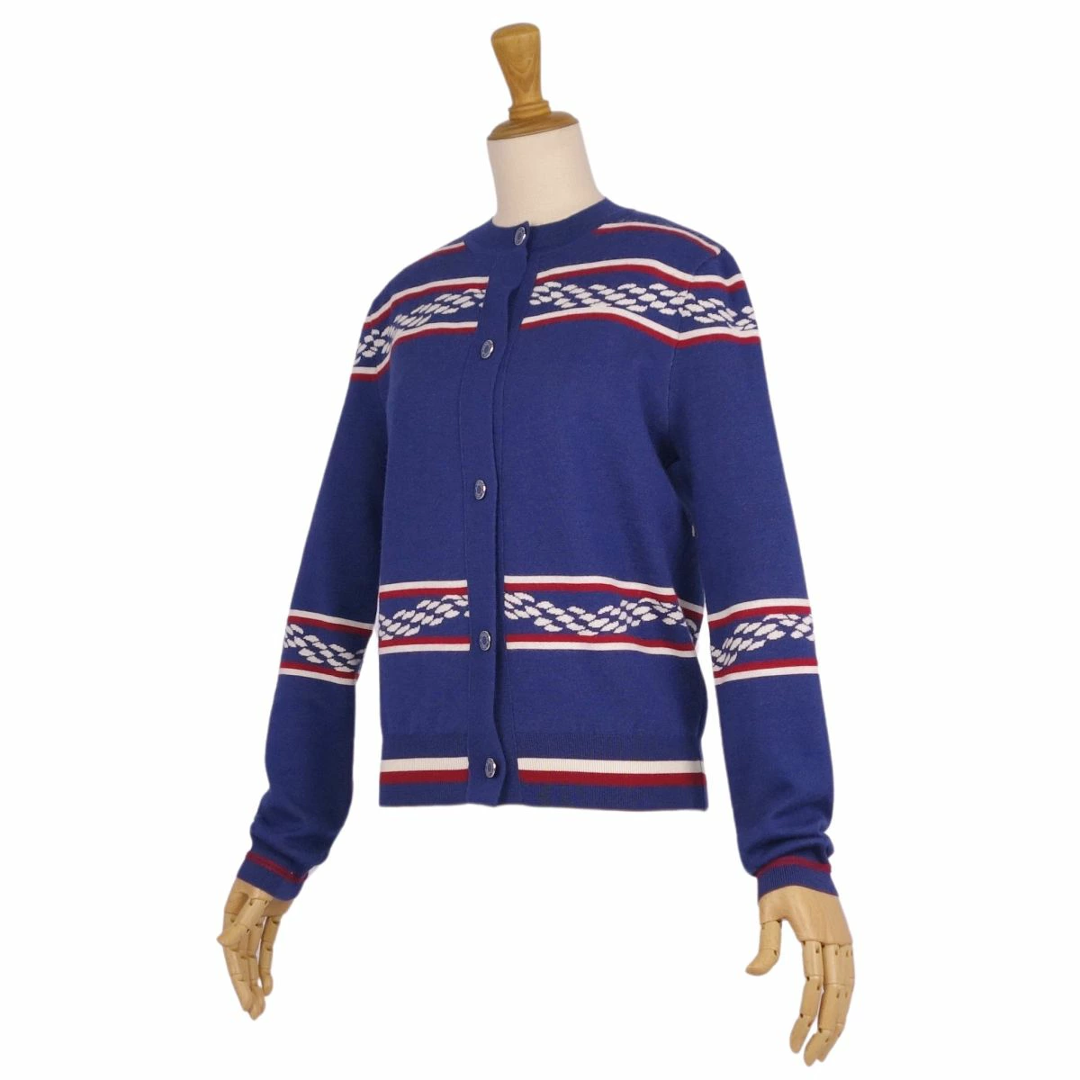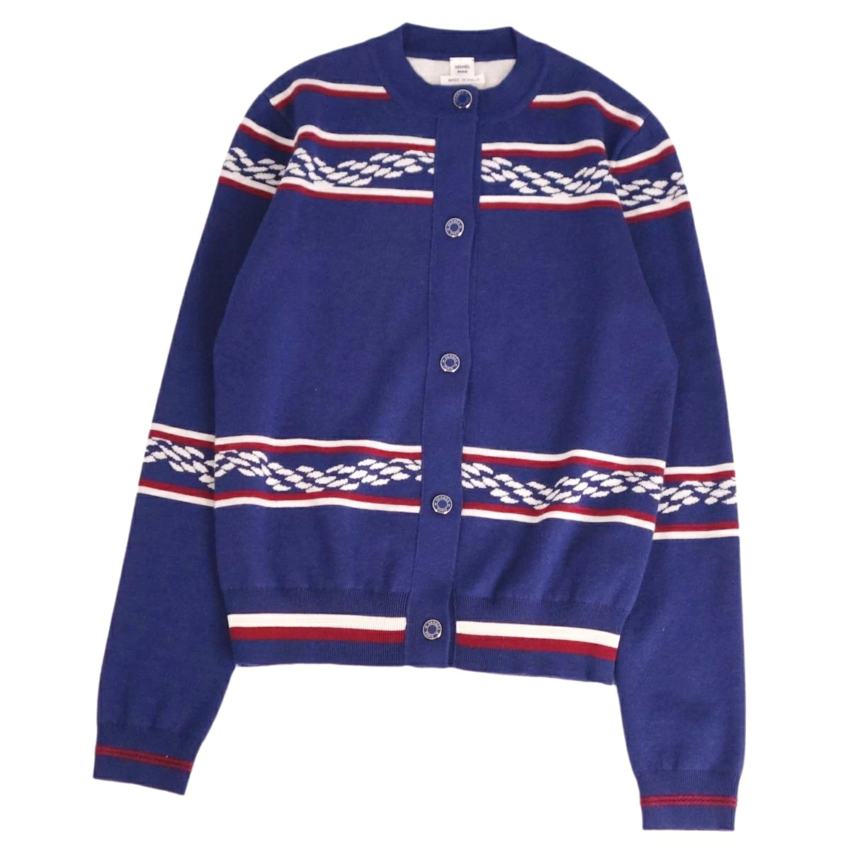 ■商品名エルメス HERMES カーディガン 23SS カヌーアンカーチェーン セリエボタン ニット カシミヤ シルク トップス レディース イタリア製 ネイビー サイズ34(S相当)■状態説明・柔らかく上質なカシミヤ素材を使用した、HERMES「2023SSシーズン」のカーディガンです♪・鮮やかなカラーリングにアイコニックなカヌーアンカーチェーンデザインが目を引く一品です◎・イタリア製・国内正規取り扱いの製品です。・USEDですが使用感も少なくキレイな状態です!【季節感:秋冬】【付属品:なし】■素材カシミヤ48% シルク48% ナイロン3% ポリウレタン1%■カラーネイビー■表記サイズ34(S相当)■実寸サイズ着丈:約57cm身幅:約44cm肩幅:約37cm袖丈:約60cm■状態ランクSA 使用感のほぼ無いとてもキレイなUSED品■店舗管理番号ce07oe-rm20e32457womens_navy womens_s