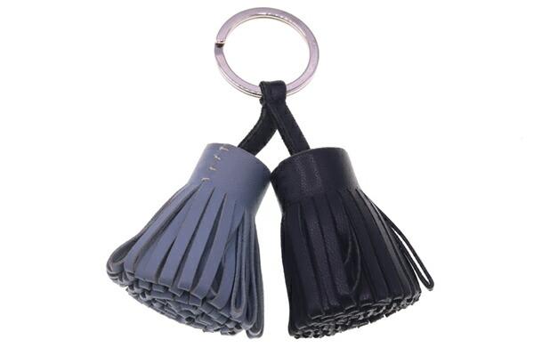 エルメスキーリングカルメンウノドスアニョーミロブラックグレー中古キーホルダーバッグチャーム鍵カギタッセルフリンジレディースHERMES
