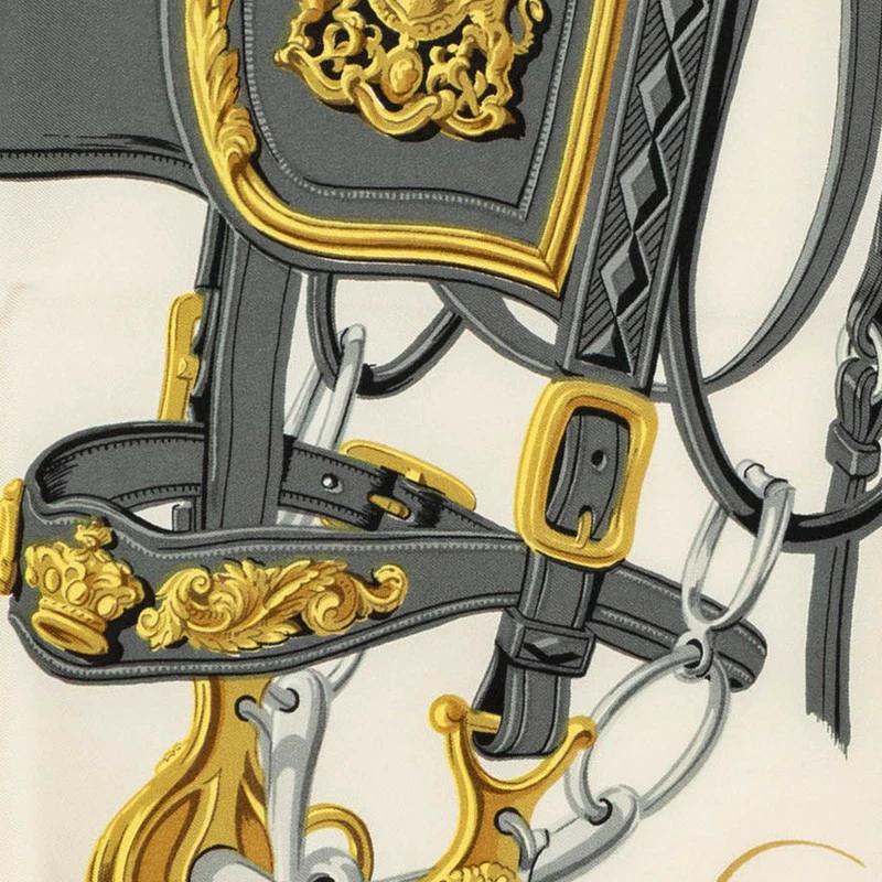 Pre-owned Hermès Carré 90 BRIDES de GALA ceremonial bridle scarf in pink and multicolored silk for women.