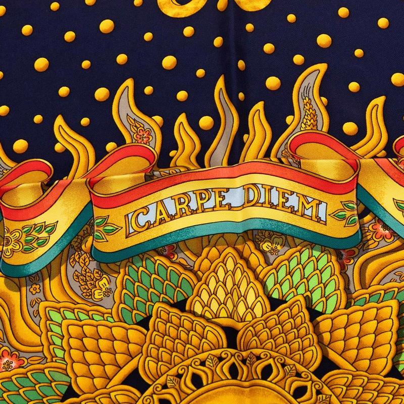 Pre-owned Hermès Carré 90 "Enjoy Today" Scarf in Navy, Gold, and Multicolor Silk. Women's.