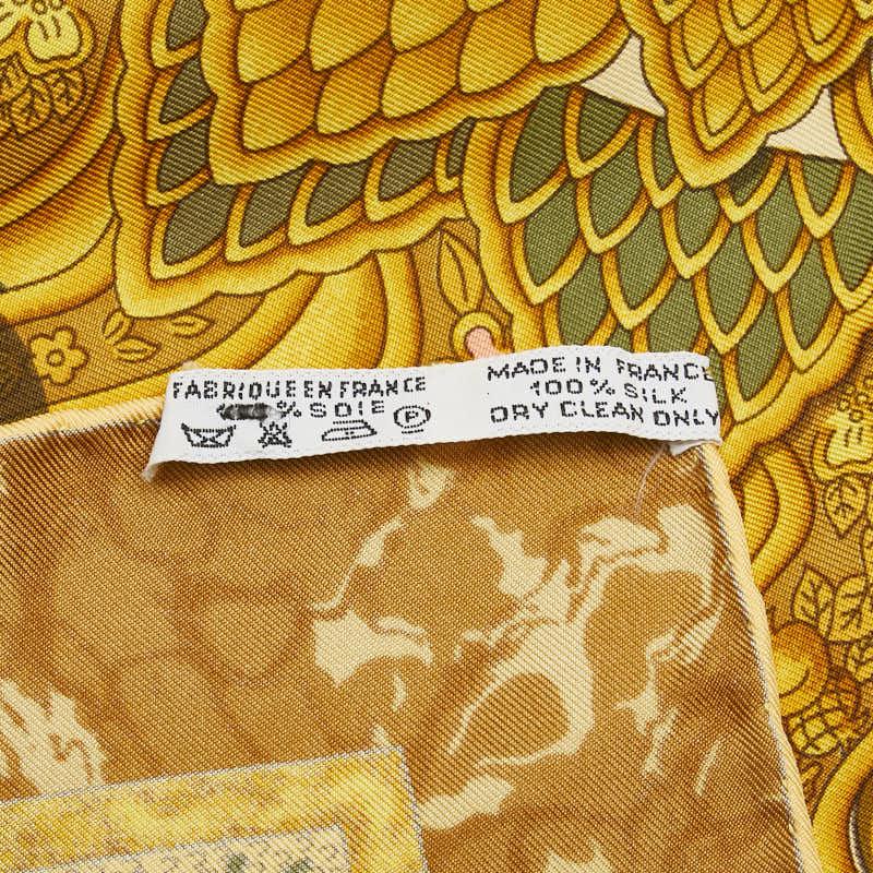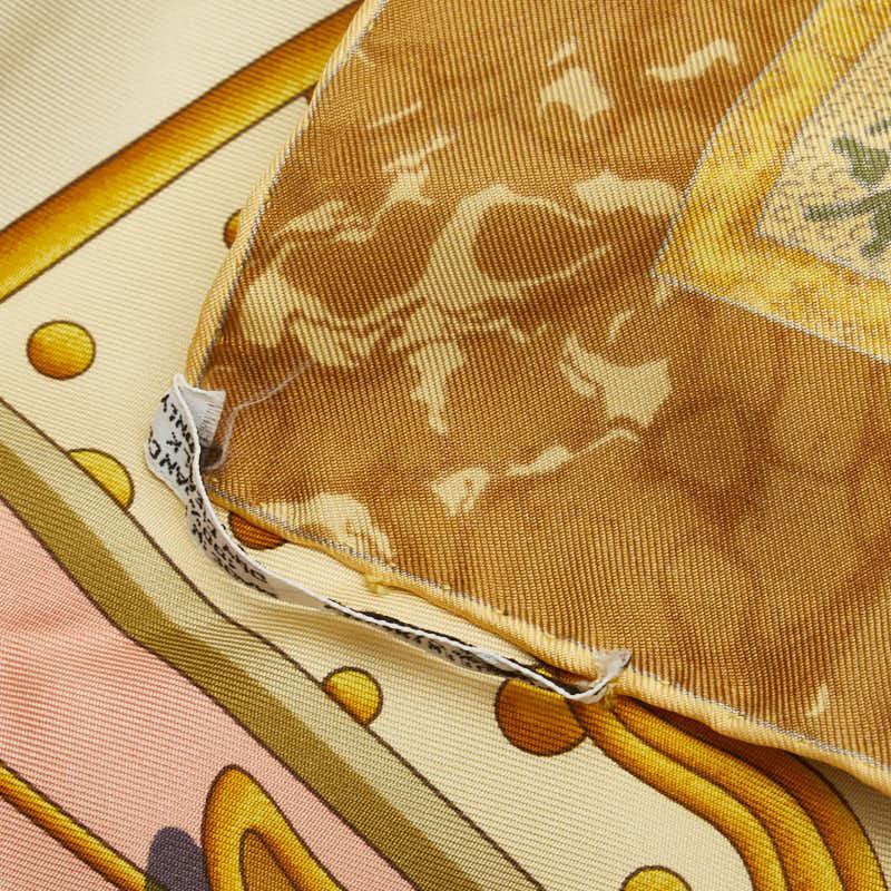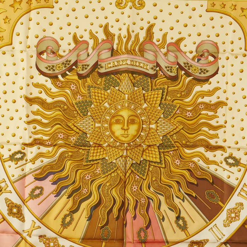 Pre-owned Hermès Carré 90 GLORIA SOLI Glory Day Scarf, Yellow Multicolor Silk, Women's