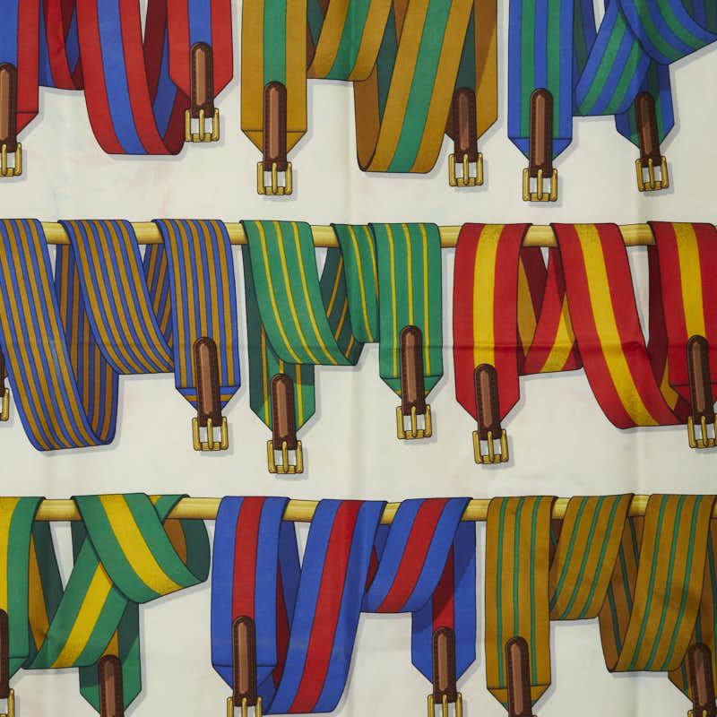 Pre-owned Hermès Carré 90 J.METZ Les Sangles suspender belt scarf in multicolored silk. Women's.