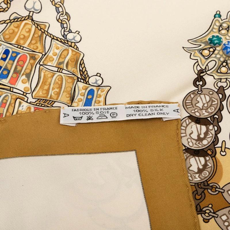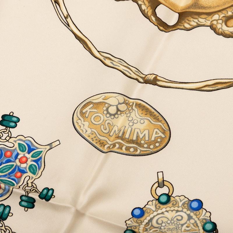 Pre-owned Hermès Carré 90 KOSMIMA Space Scarf, Beige Multicolor Silk, Women's