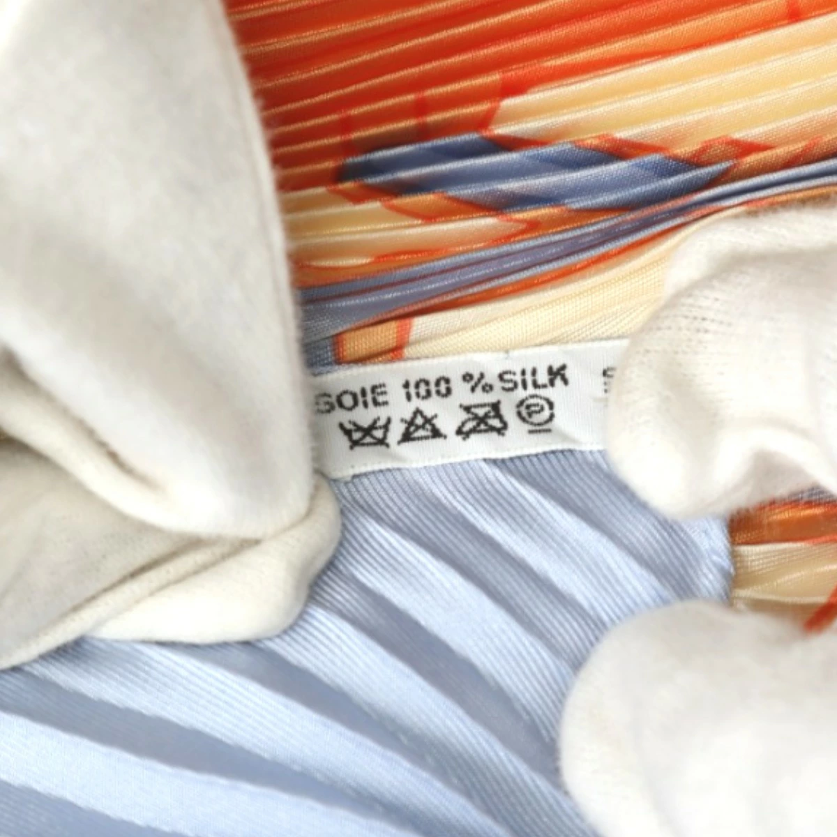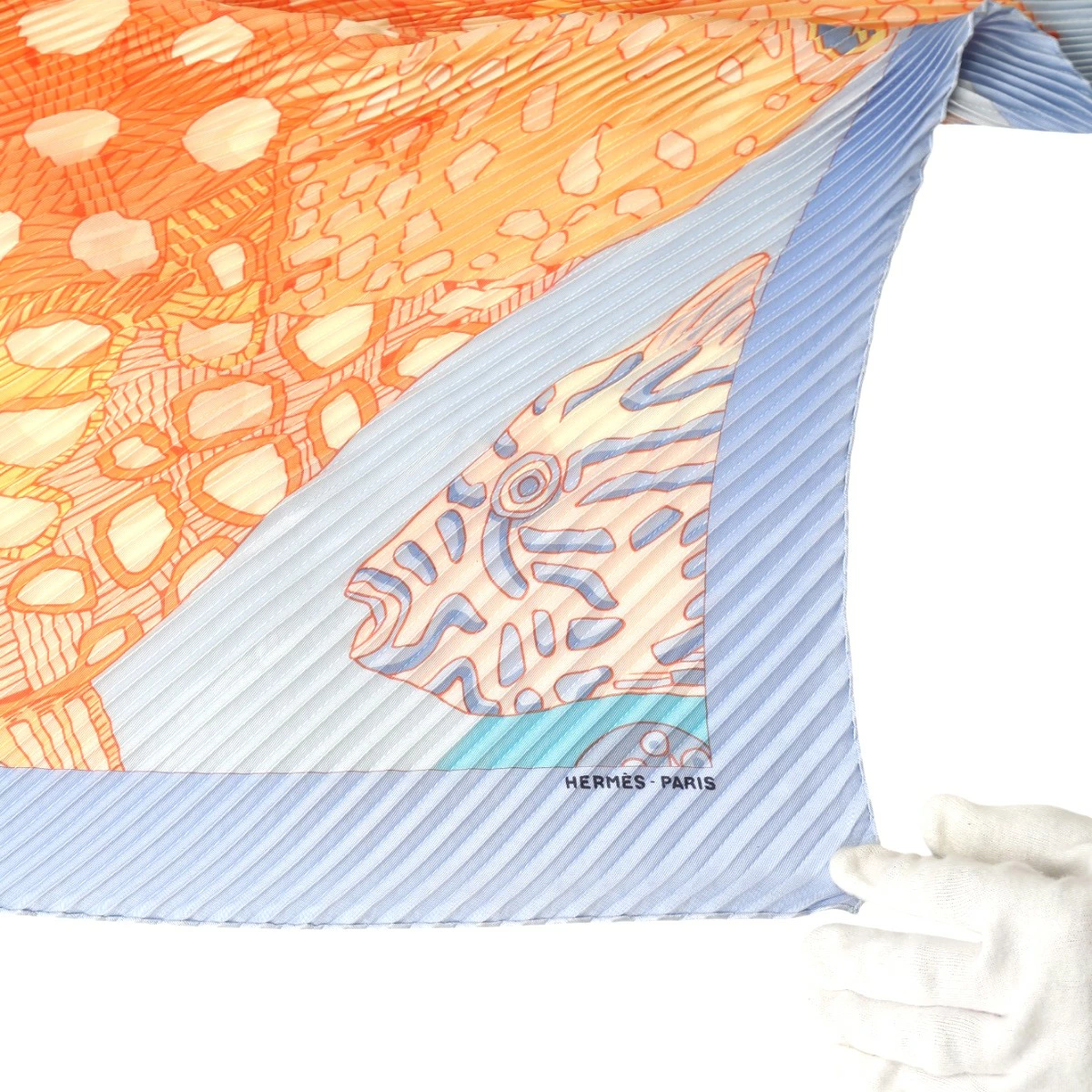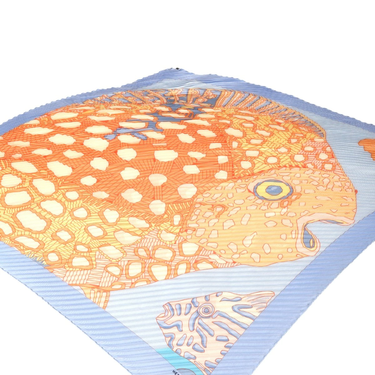 | スカーフHERMES プリーツスカーフ深海魚 GRANDS FONDS シルク100% カレ90ユニセックス オレンジ |