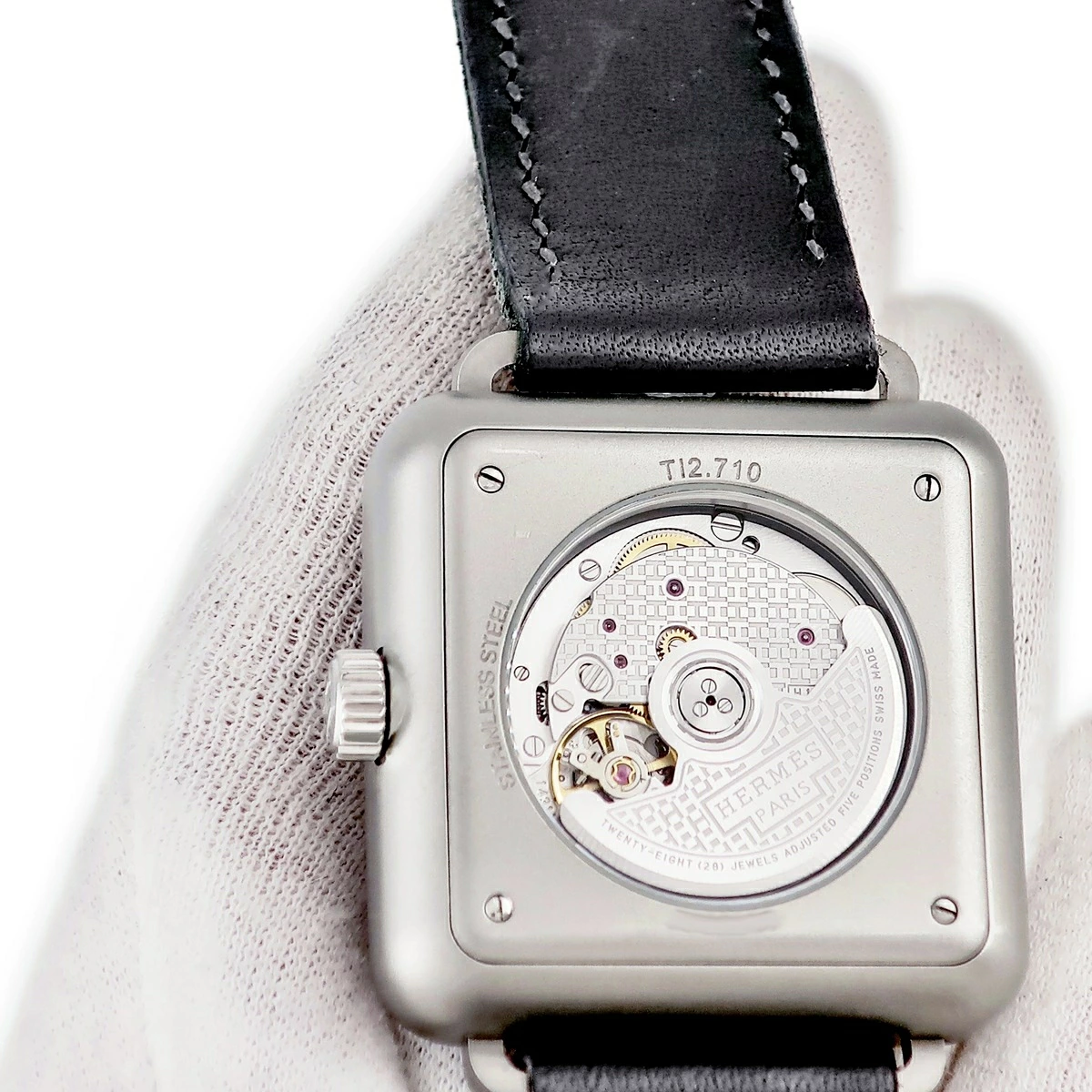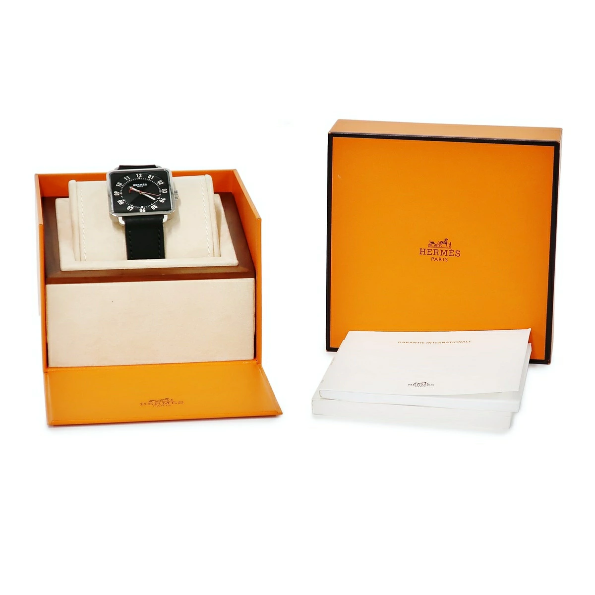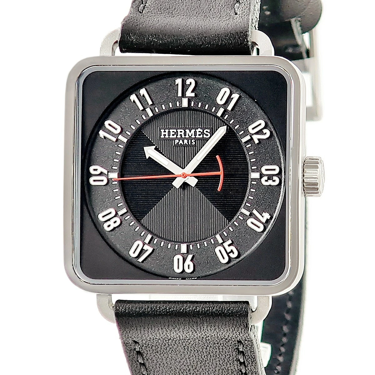 エルメス HERMES カレ アッシュ 38mm TI2.710 W045777WW00 ブラック 黒 アラビア スクエア メンズ 腕時計自動巻き ブラック 【中古】【店頭受取不可】