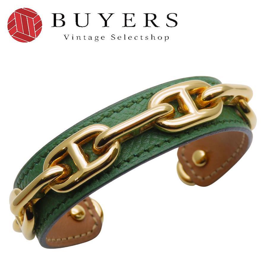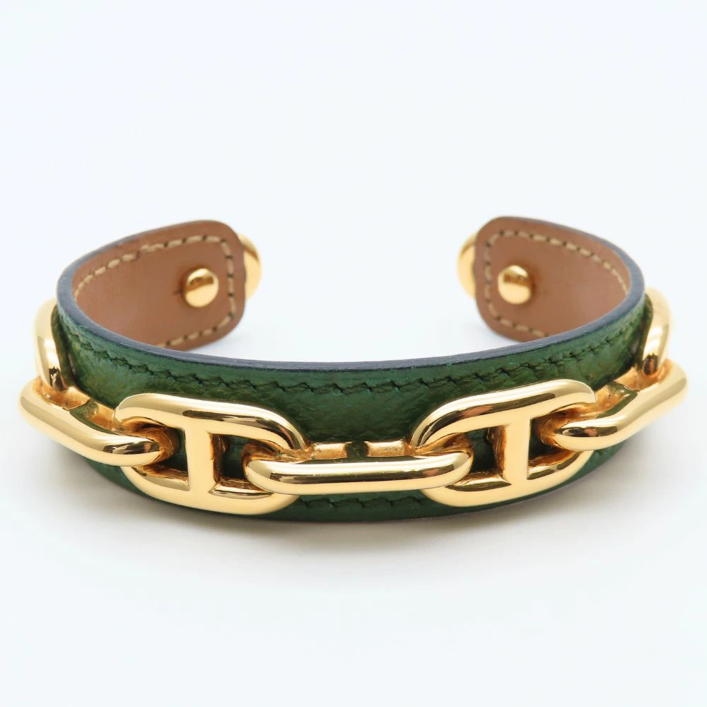 | 品名 | 【中古】 エルメス バングル シェーヌダンクル レザー メタル グリーン ゴールド メッキ GP アクセサリー レディース 女性 HERMES |