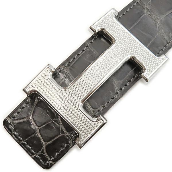 エルメス HERMES コンスタンスH コンスタンスH ベルト ポロサス グラファイト クロコ Hバックル シルバー金具 □K刻印 - メンズ定番 人気 美品 【中古】