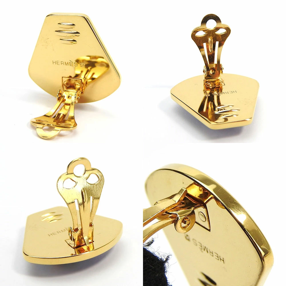 Pre-owned Hermès earrings, enamel, blue gold, cloisonné, GP plated, accessories, jewelry, fan, small item, stylish, women's, HERMES earrings accessory