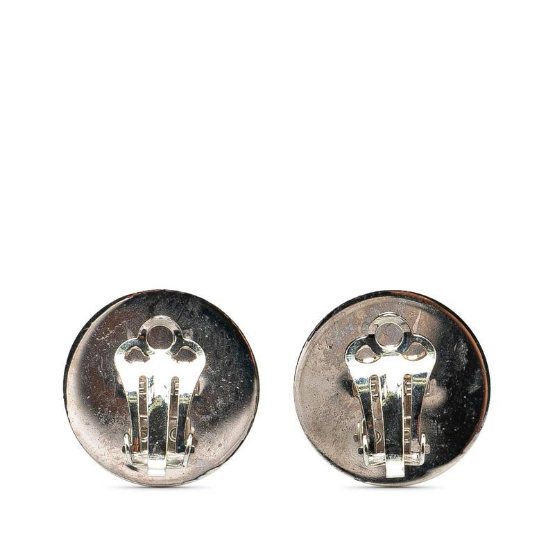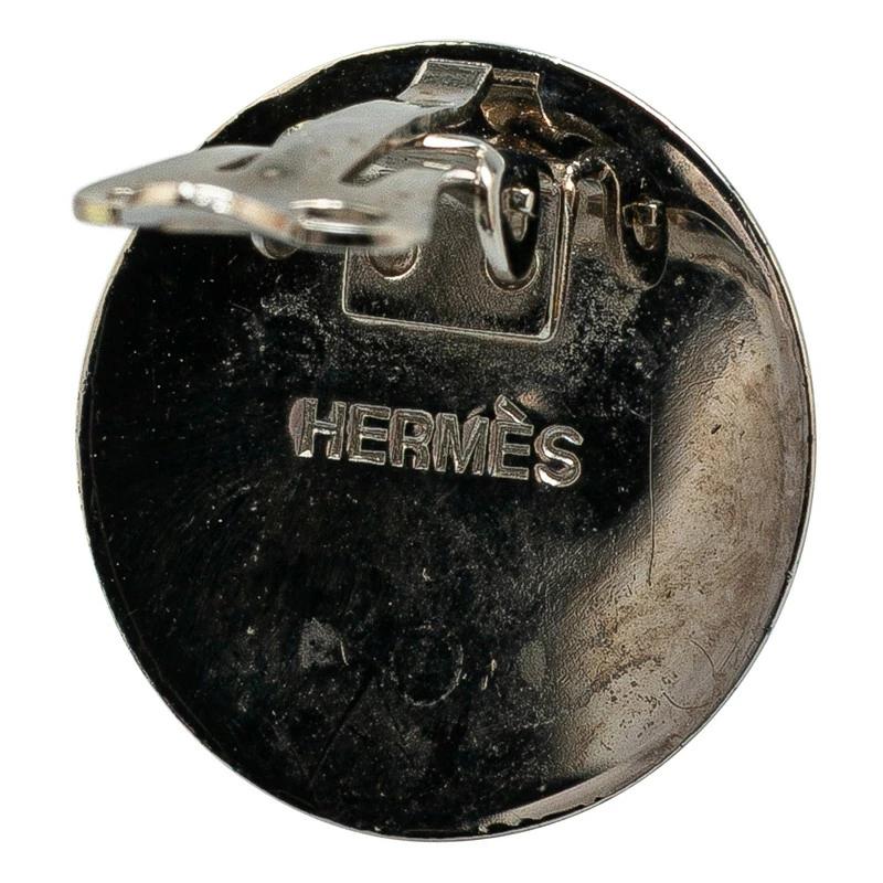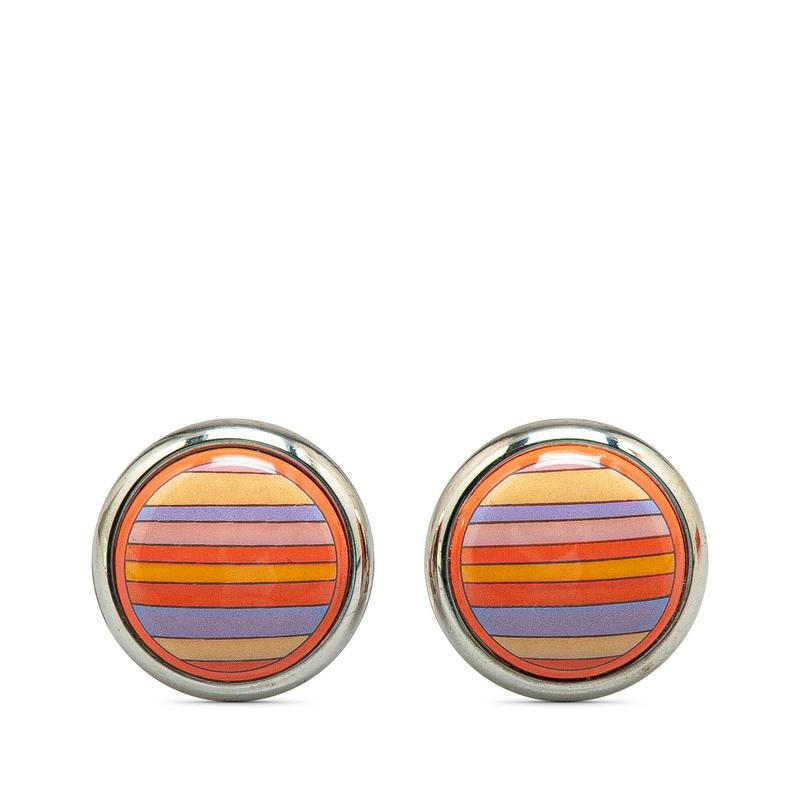 Pre-owned Hermès enamel cloisonné border earrings in silver and orange metal for women.