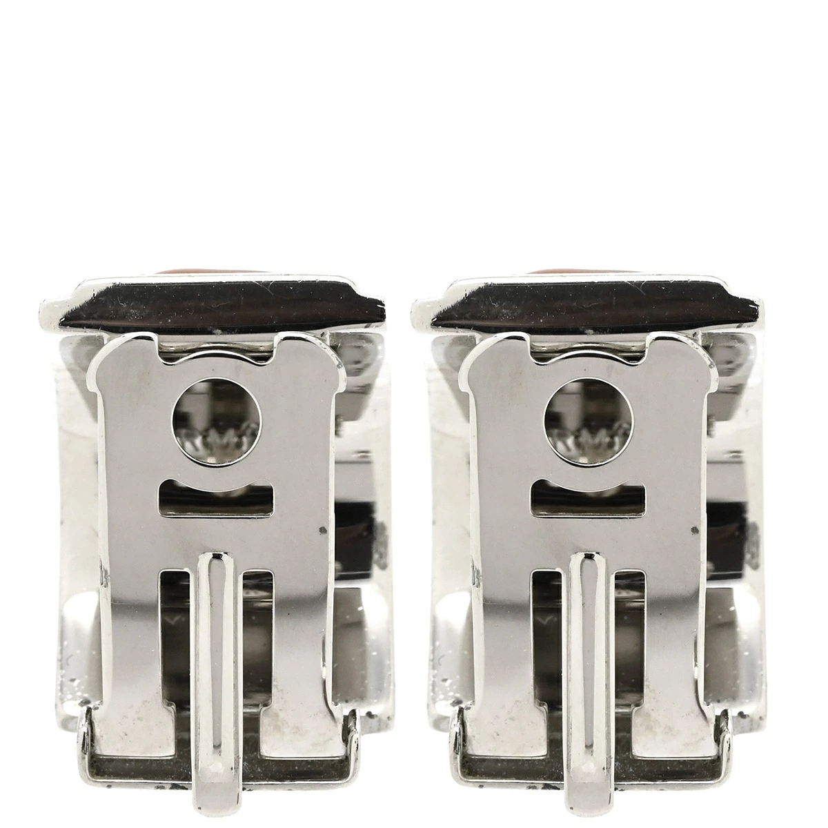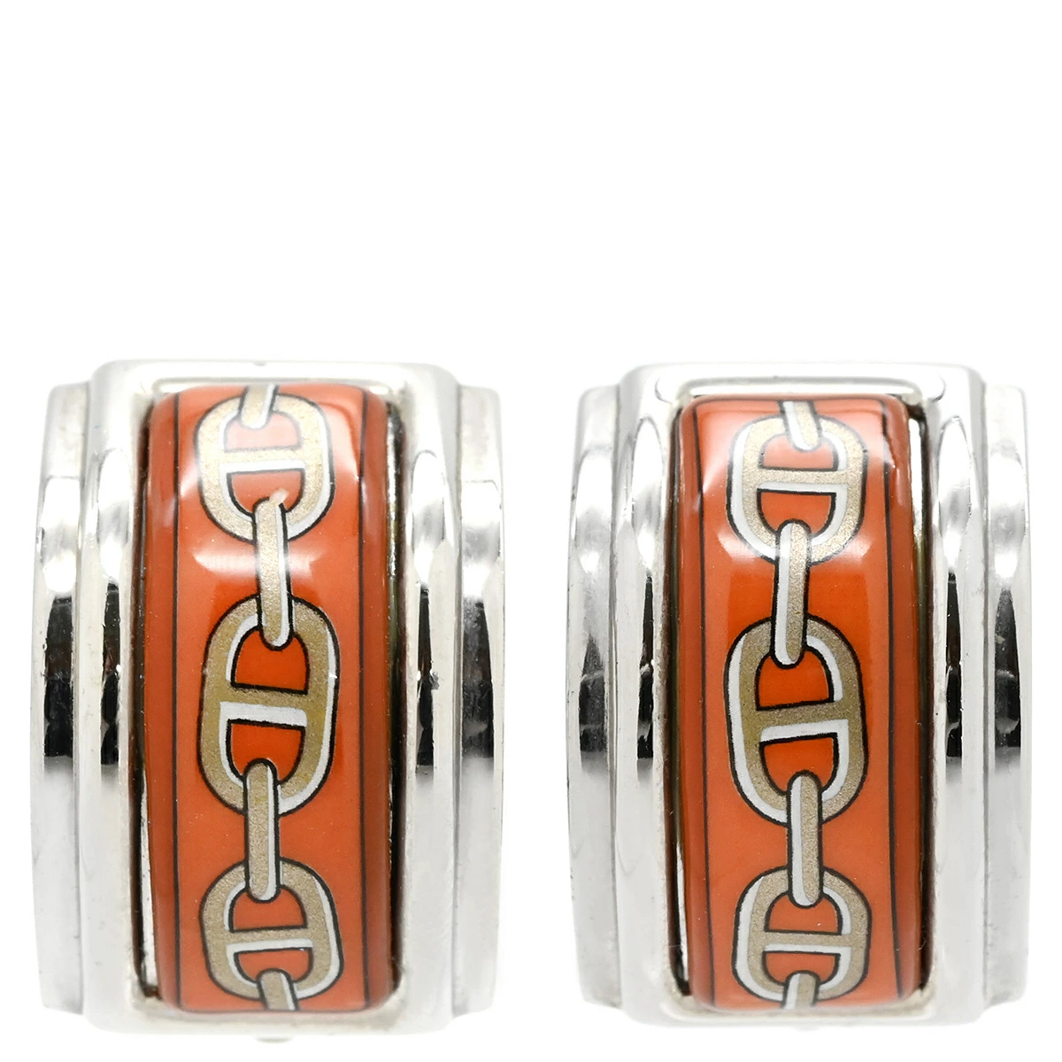 エルメス HERMES エマイユ エマイユ イヤリング メタル 七宝焼き オレンジXグレー 七宝 シェーヌダンクル柄 シルバー金具 - レディース定番 人気 美品 【中古】