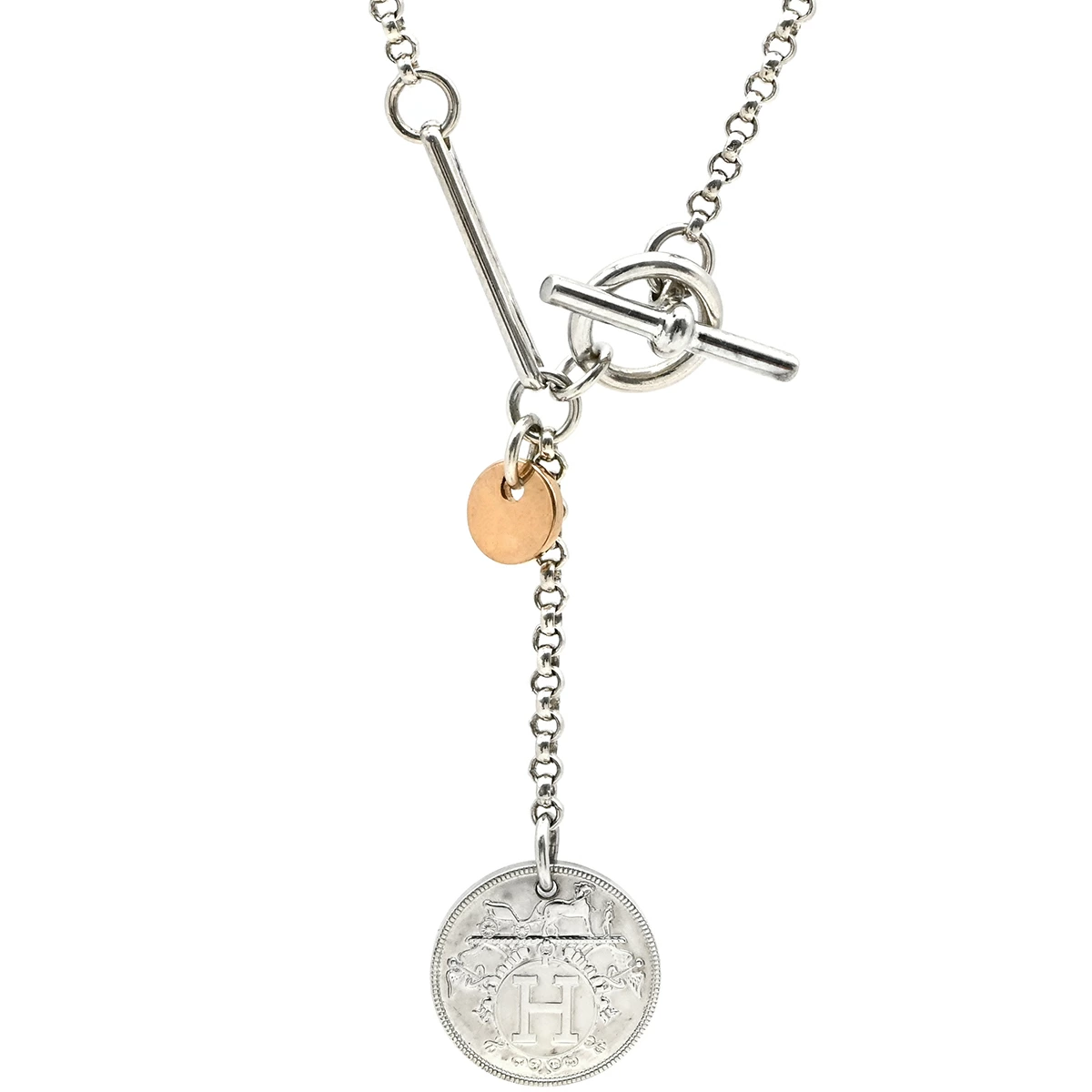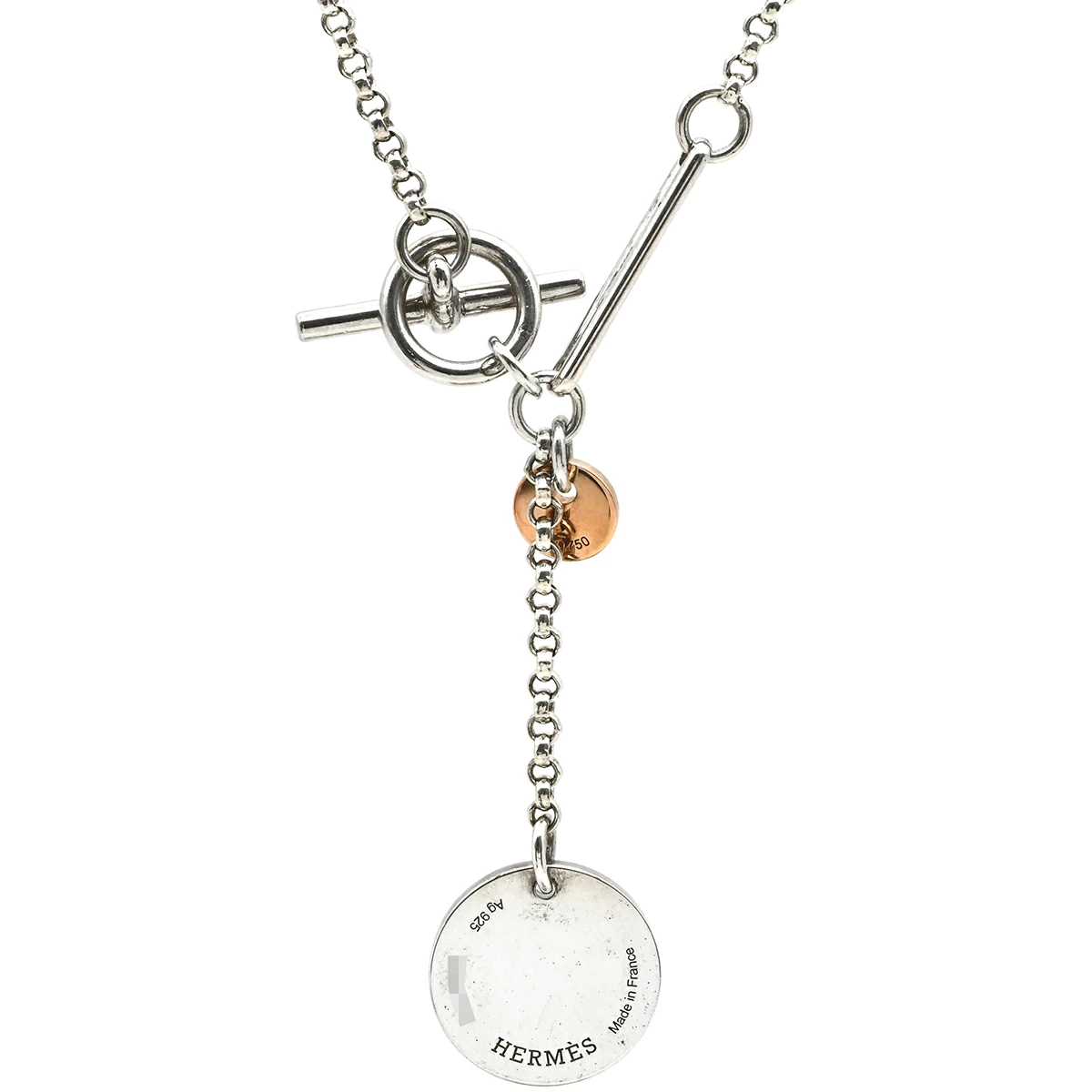 エルメス HERMES エクスリブリス ペンダントPM ネックレス K18PG シルバー925 シルバー×ピンクゴールド シルバー金具 - メンズ レディース ユニセックス定番 人気 美品 【中古】
