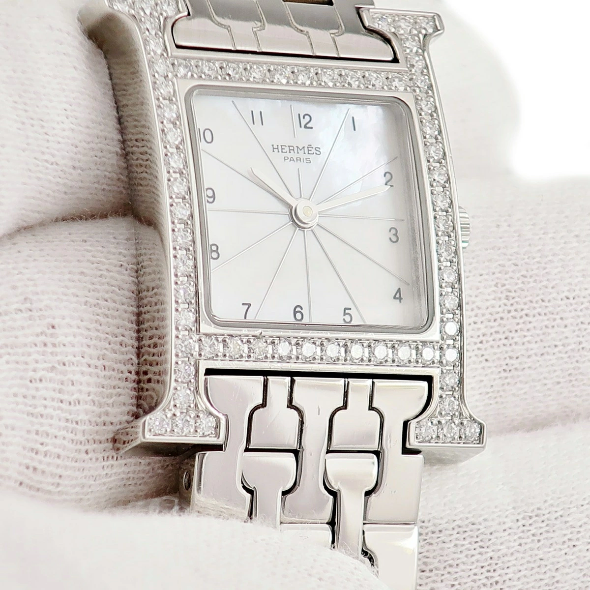 エルメス HERMES Hウォッチ PM HH1.230 純正ダイヤ ホワイト シェル H型ブレス スクエア レディース 腕時計クオーツ ホワイト 【中古】【店頭受取不可】