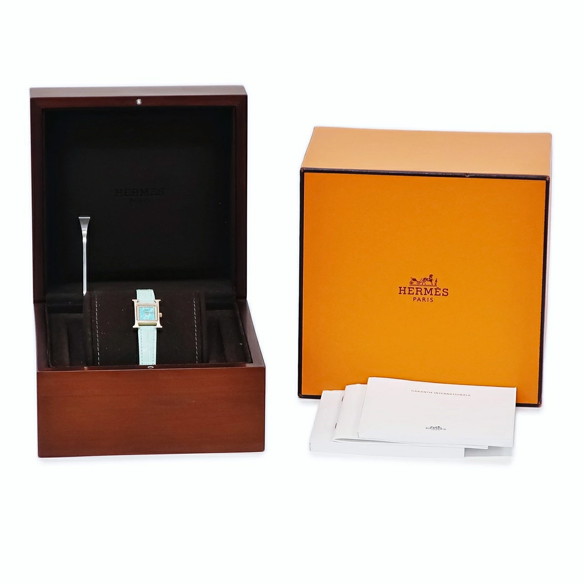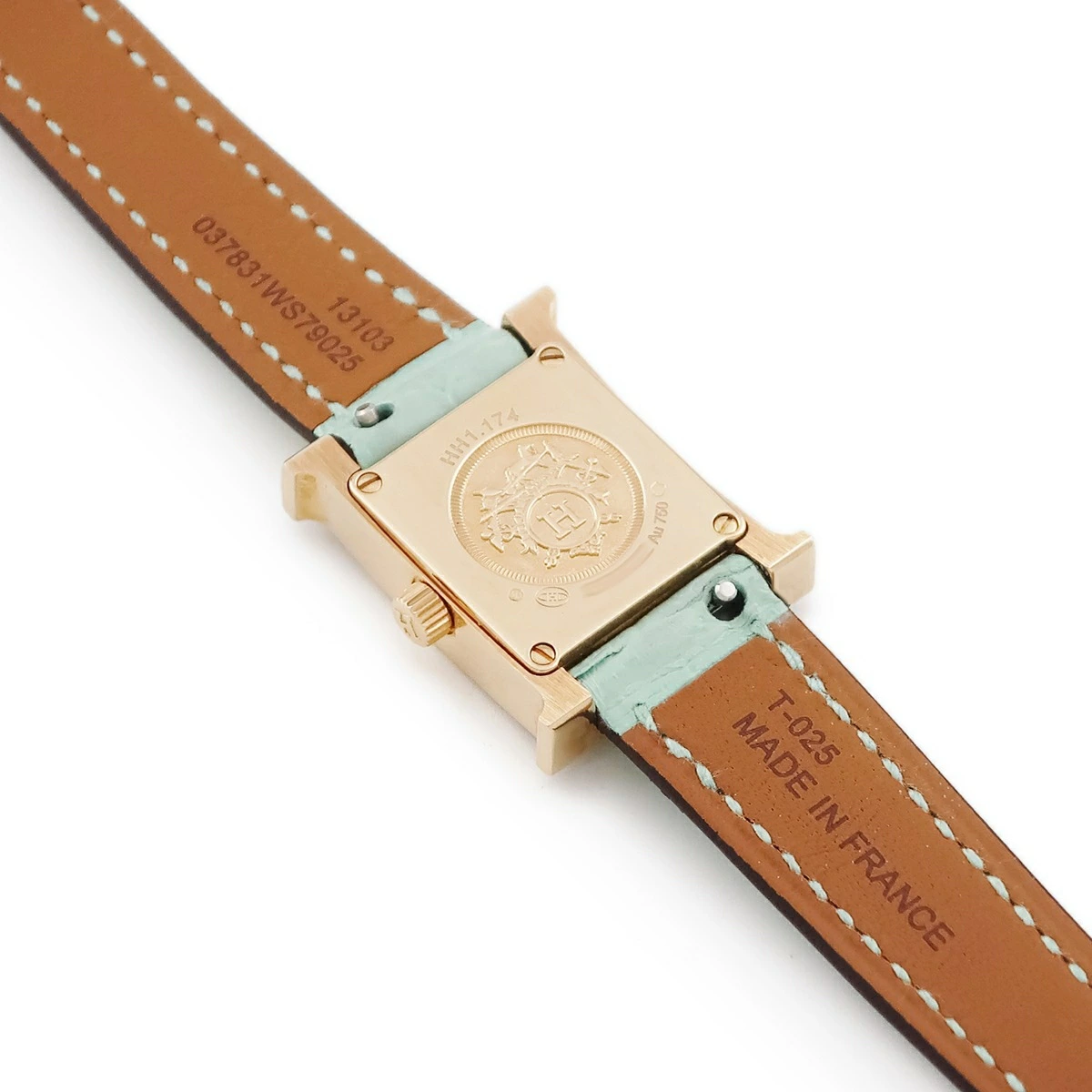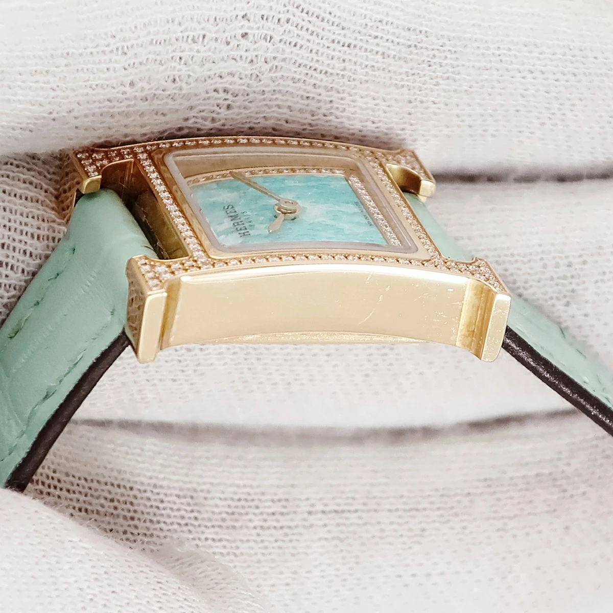 エルメス HERMES Hウォッチ TPM HH1.174 K18PG無垢 純正ダイヤ アマゾナイト H型 レディース 腕時計クオーツ ブルー 【中古】【店頭受取不可】