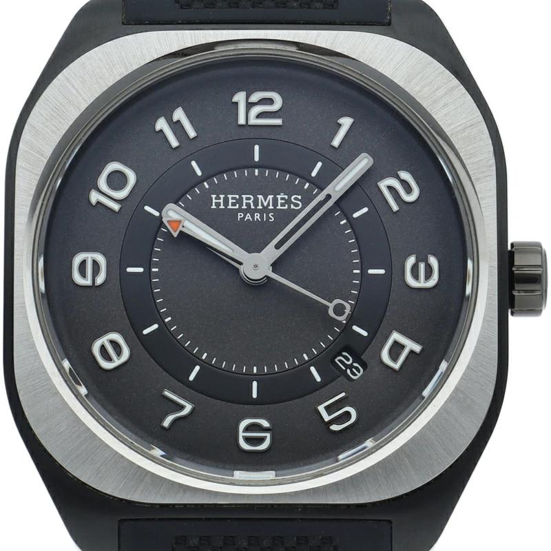 | 0と8の数字をモチーフにしたエルメスらしいデザイン性の高さを感じる2021年の新作、「H08(エイチ・オー・エイト)」シリーズです。搭載された「Cal.H1837」は、パルミジャーニフルリエのムーブメント部門として知られるヴォーシェ・マニュファクチュール・フルリエの「Cal.3002」をベースとしてエルメス専用に製造されたもので、時計ファンにも納得していただける1本です。SP1.741a/W049431WW00。 |