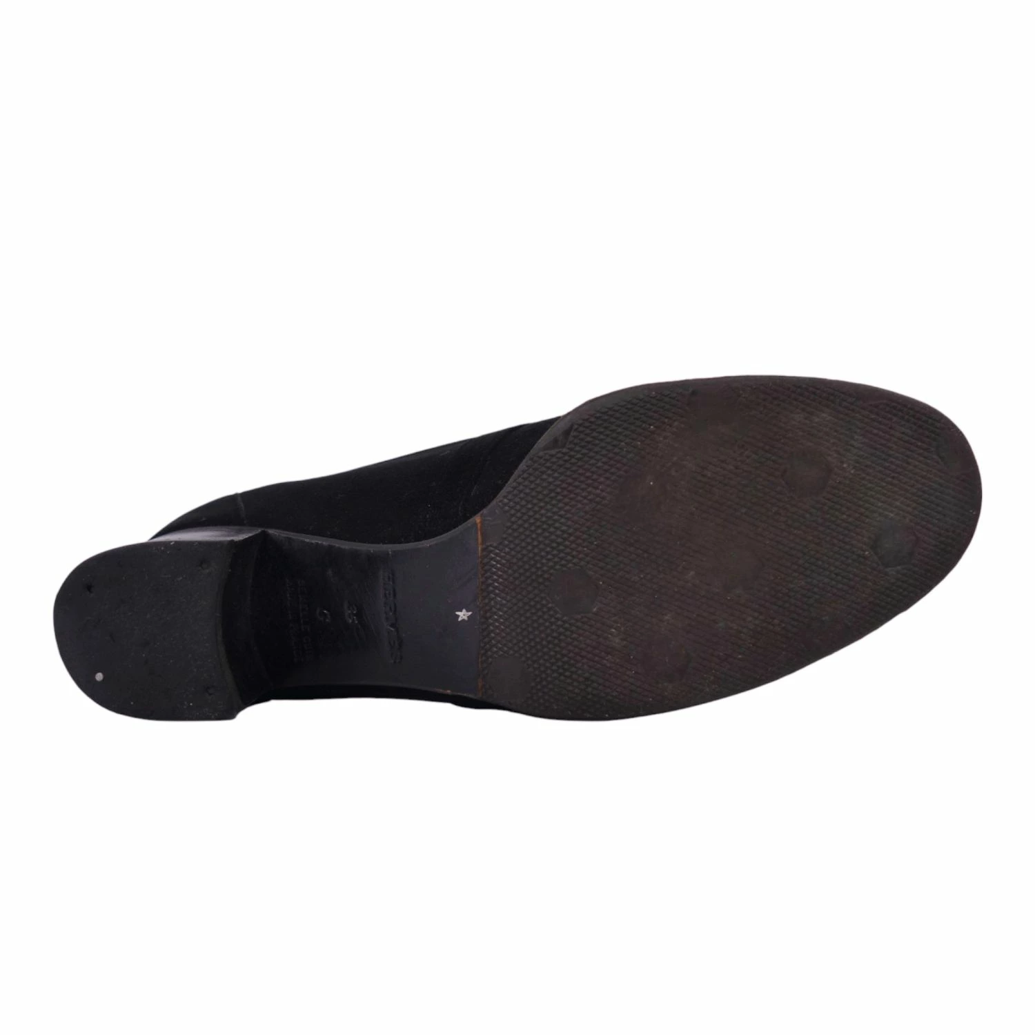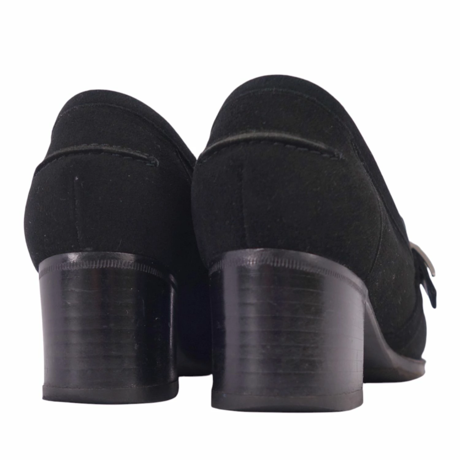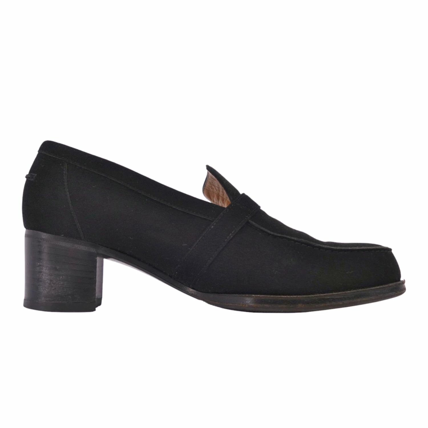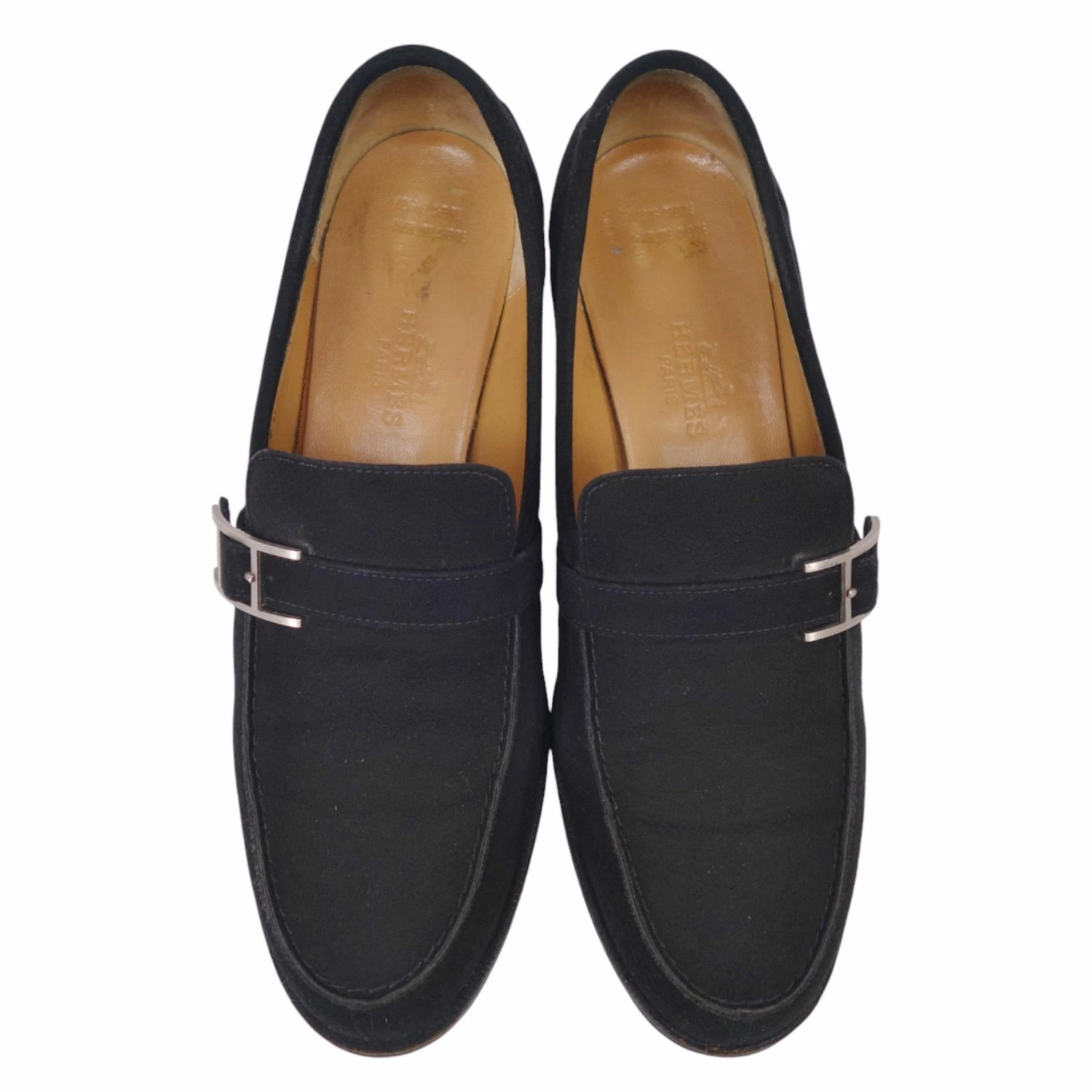 Pre-owned Hermès loafers/moccasins with suede leather and API hardware, featuring an H logo and a heel. Size 35 (equivalent to 22cm), black.