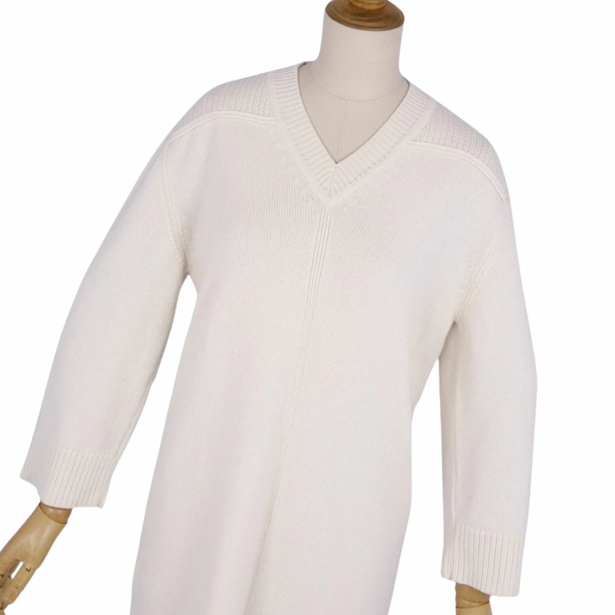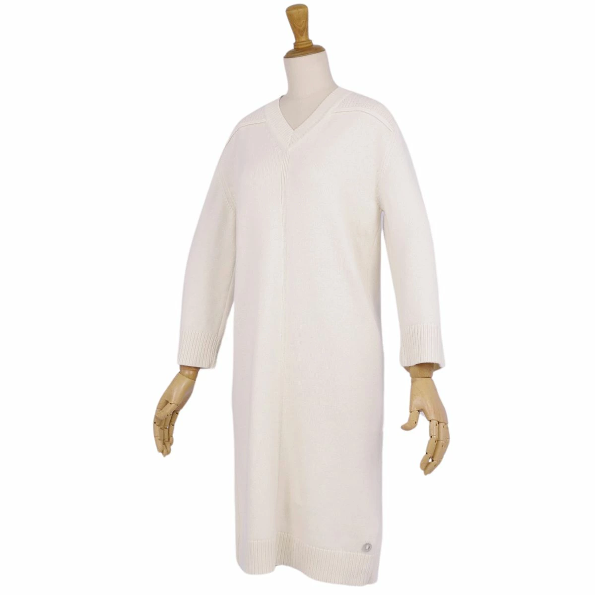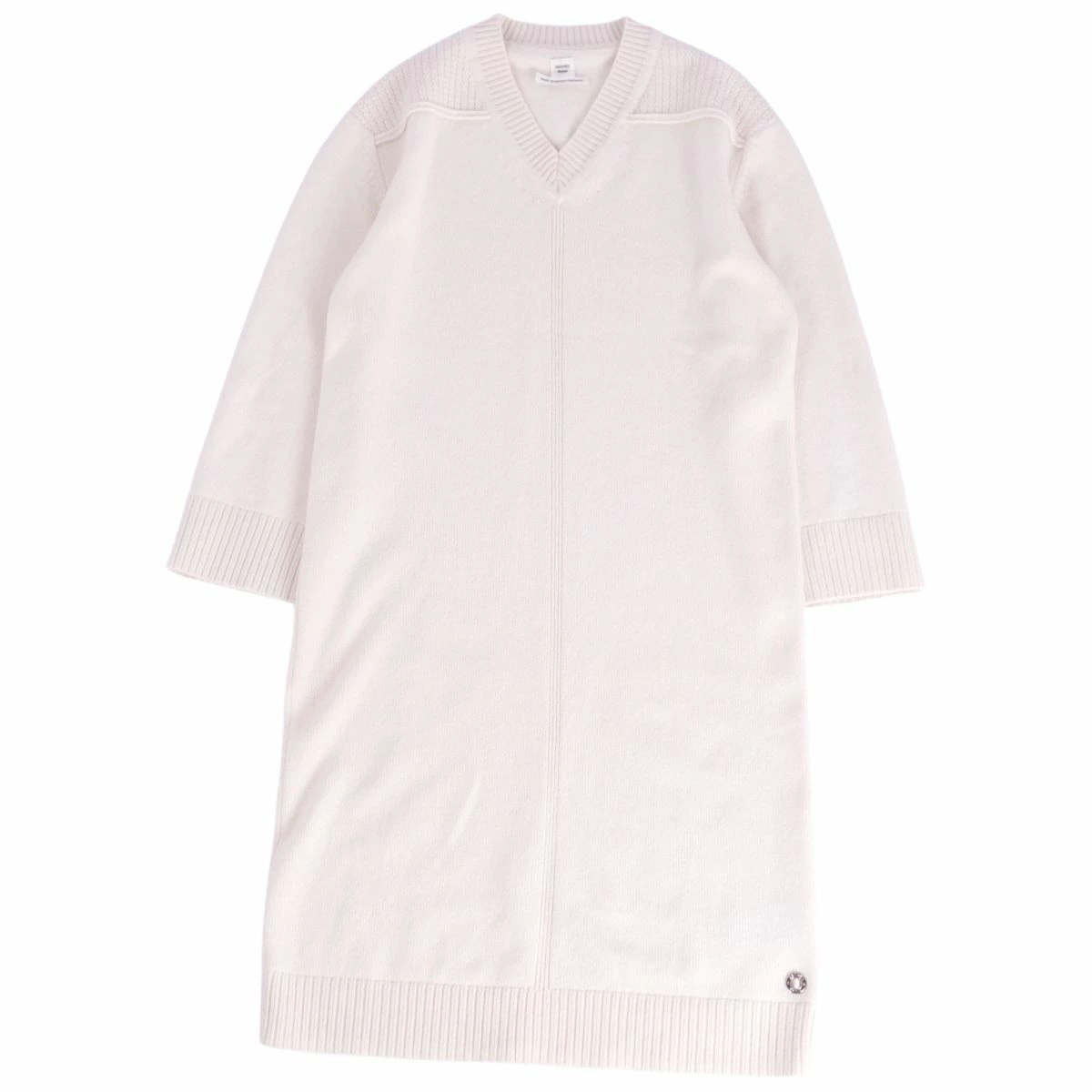 Pre-owned Hermès long-sleeved knit cashmere dress in excellent condition, made in England, size 34 (equivalent to S), ivory.