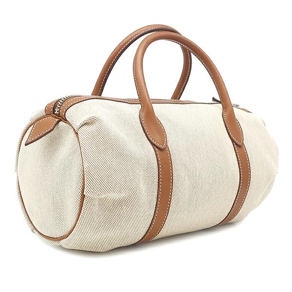 エルメス HERMES ポロションマドモアゼル ポロションマドモアゼル ハンドバッグ トワルアッシュ ヴォーバレニア ナチュラル×フォーブ 筒型 シルバー金具 □N刻印 - レディース定番 人気 美品 【中古】