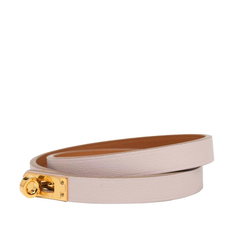 Pre-owned Hermès Mini Kelly Double Tour Bracelet in Mauve Pearl and Gold Hardware with Swift Leather. Women's.