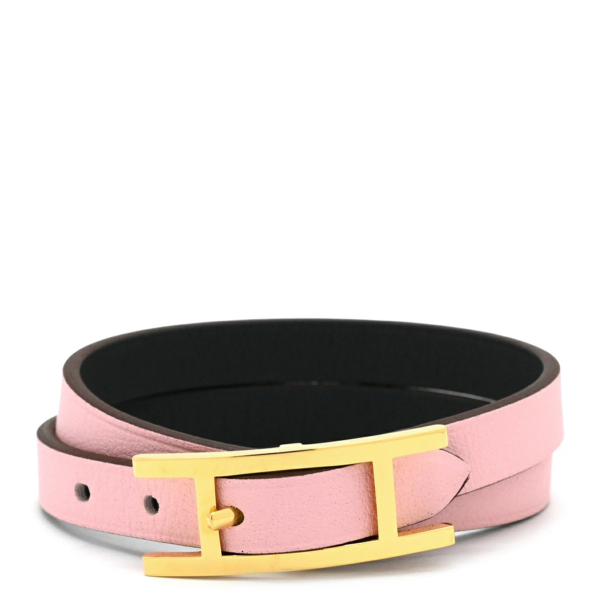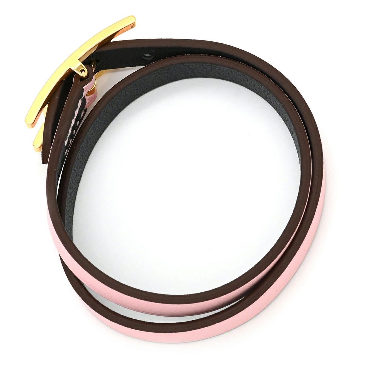 エルメス HERMES ピーアピ ドゥブルトゥール ブレスレット ヴォースイフト メタル ローズサクラ×グリミスティ アピ バックル ゴールド金具 - レディース 【箱】定番 人気 美品 【中古】
