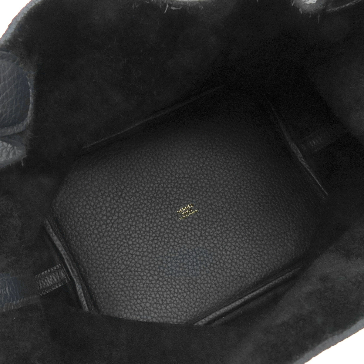 Pre-owned Hermès Picotin Lock MM handbag in Taurillon Clemence leather, black with gold hardware, one key missing, U stamp.