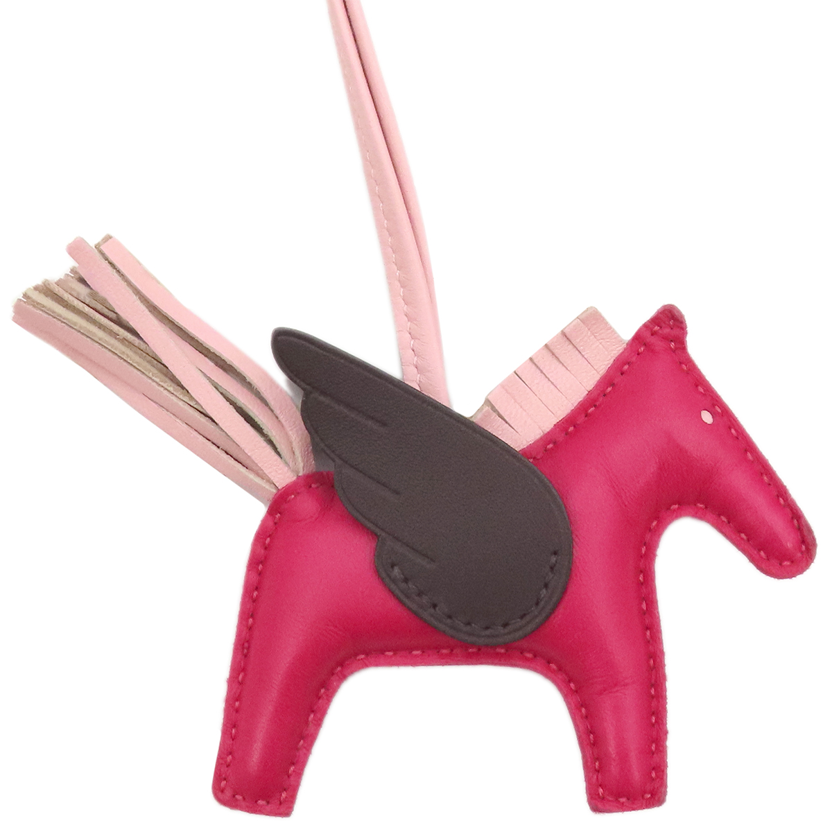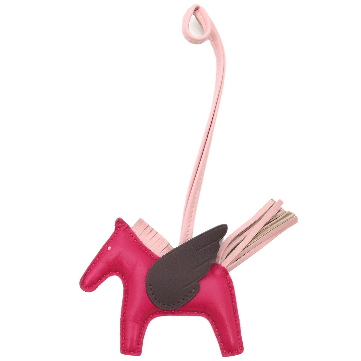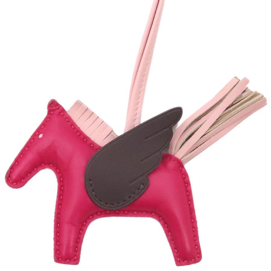 Pre-owned Hermès Rodeo PM Pegasus Bag Charm, Anneu Milo, Framboise x Rouge Cellier x Rose Sakura, Pink Brown, Z Stamp.