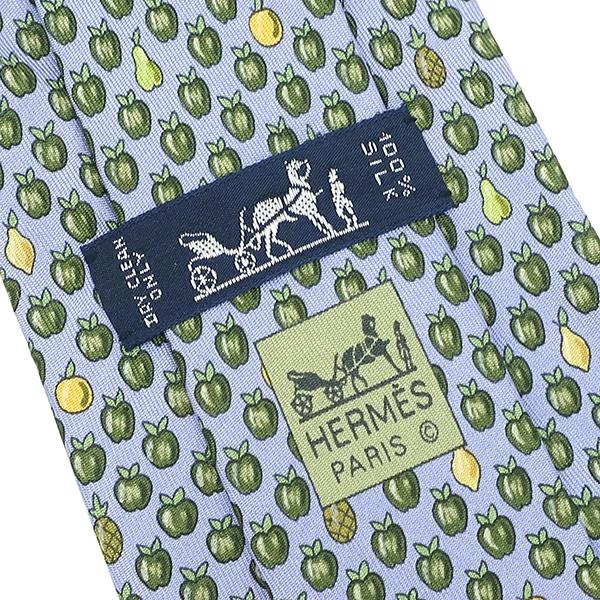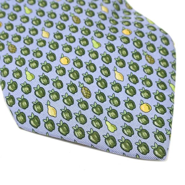 エルメス HERMES リンゴ 果物 フルーツ 9cm ネクタイ シルク ブルー×グリーン 青 水色 総柄 マンゴー パイナップル - メンズ定番 人気 美品 【中古】