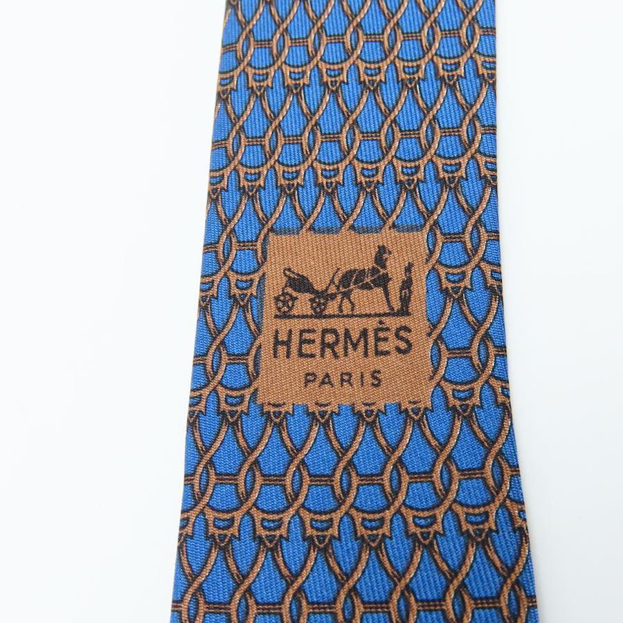 | 品名 | 【中古】 エルメス ネクタイ トヨタ限定品 シルク ブルー ブラウン スーツ ビジネス チェーン柄 メンズ 男性 HERMES |