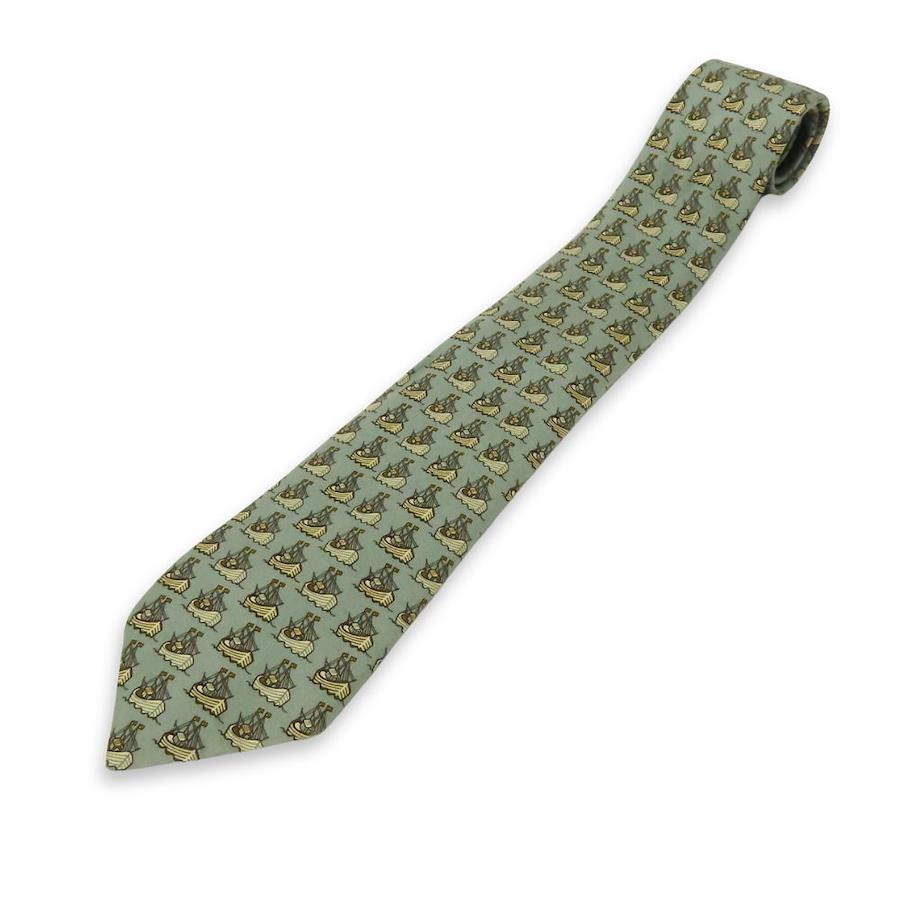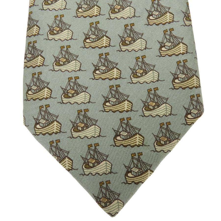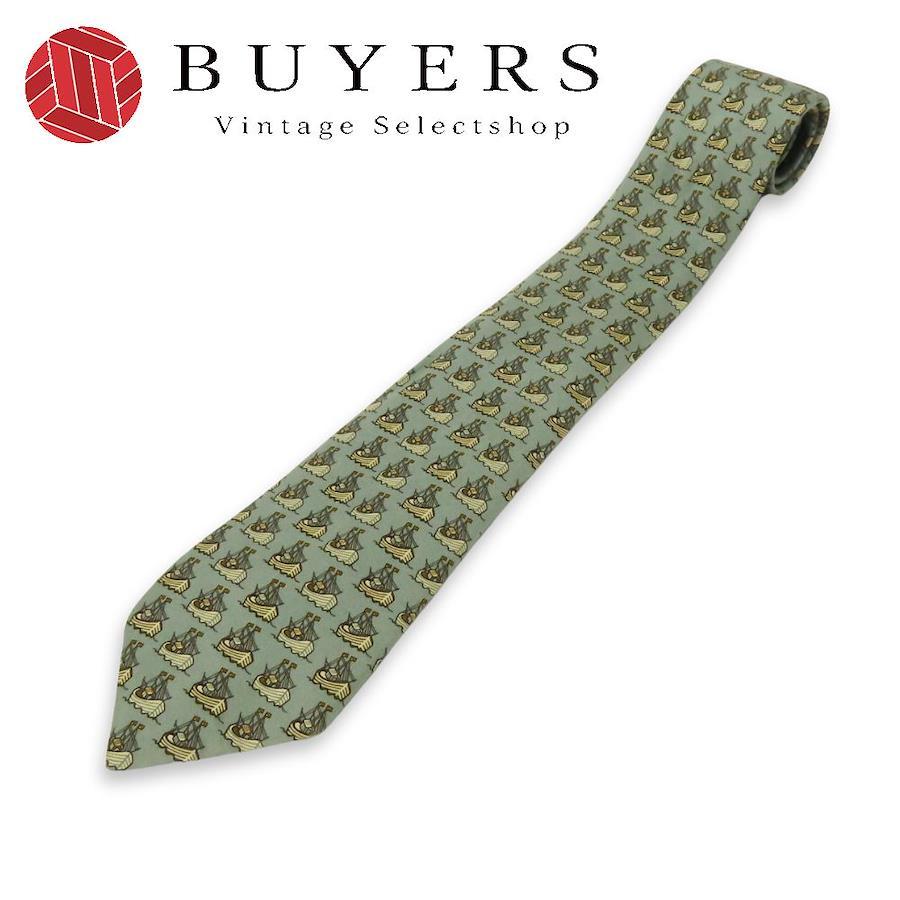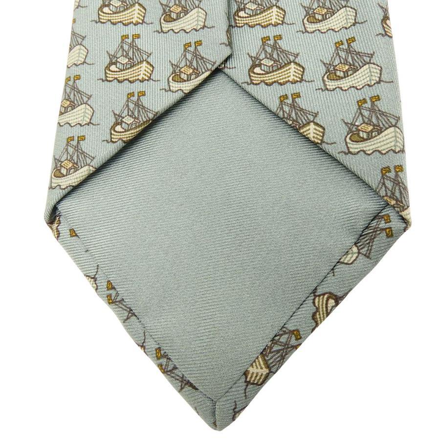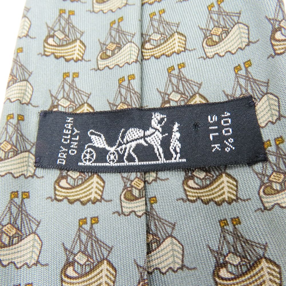 | 品名 | 【中古】 エルメス ネクタイ 船モチーフ シルク くすみグリーン ビジネス 紳士 スーツ メンズ 男性 HERMES |