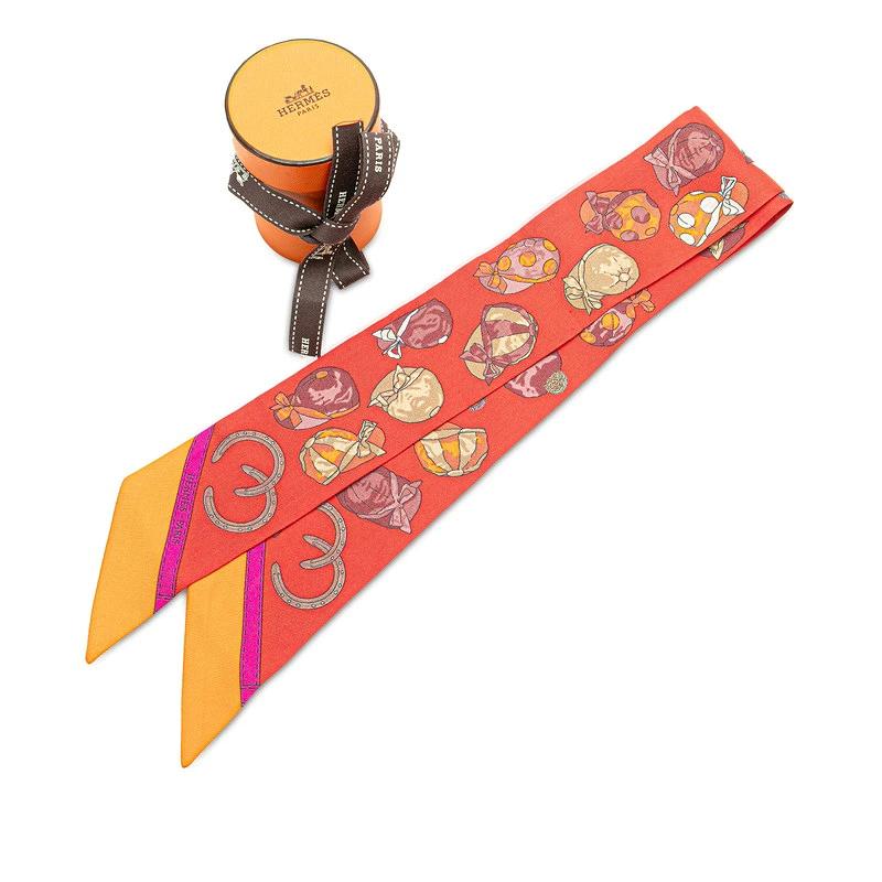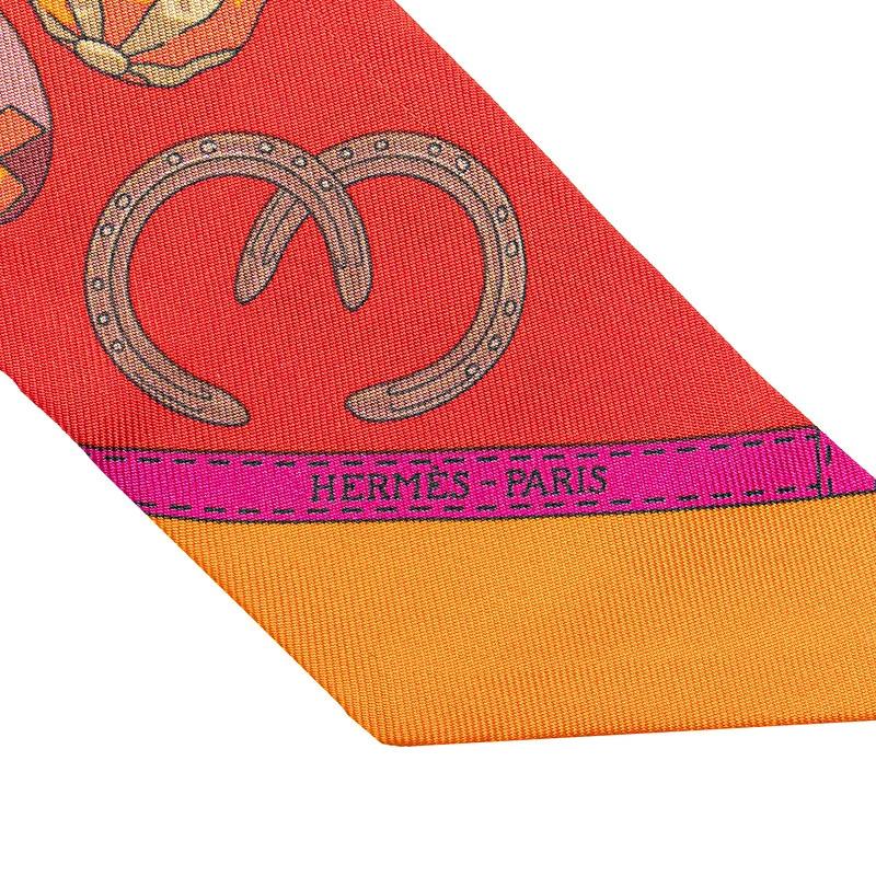 Pre-owned Hermès Twilly JOCKEY equestrian hat motif scarf in red and orange silk. Women's.