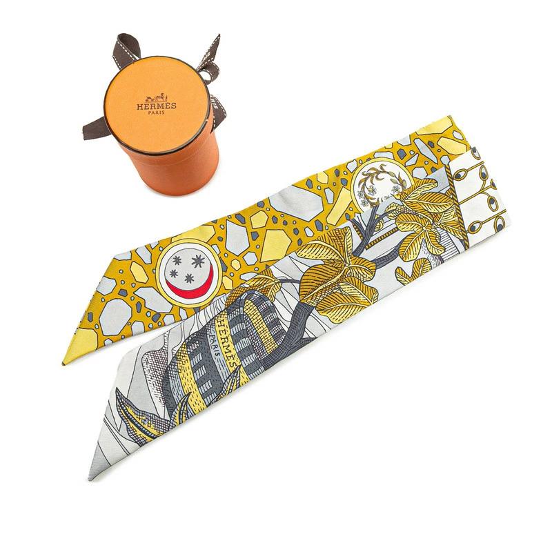 Pre-owned Hermès Twilly "La Danse des es" (The Dance of the Amazons) Scarf in White, Yellow, and Multicolor Silk. Women's.