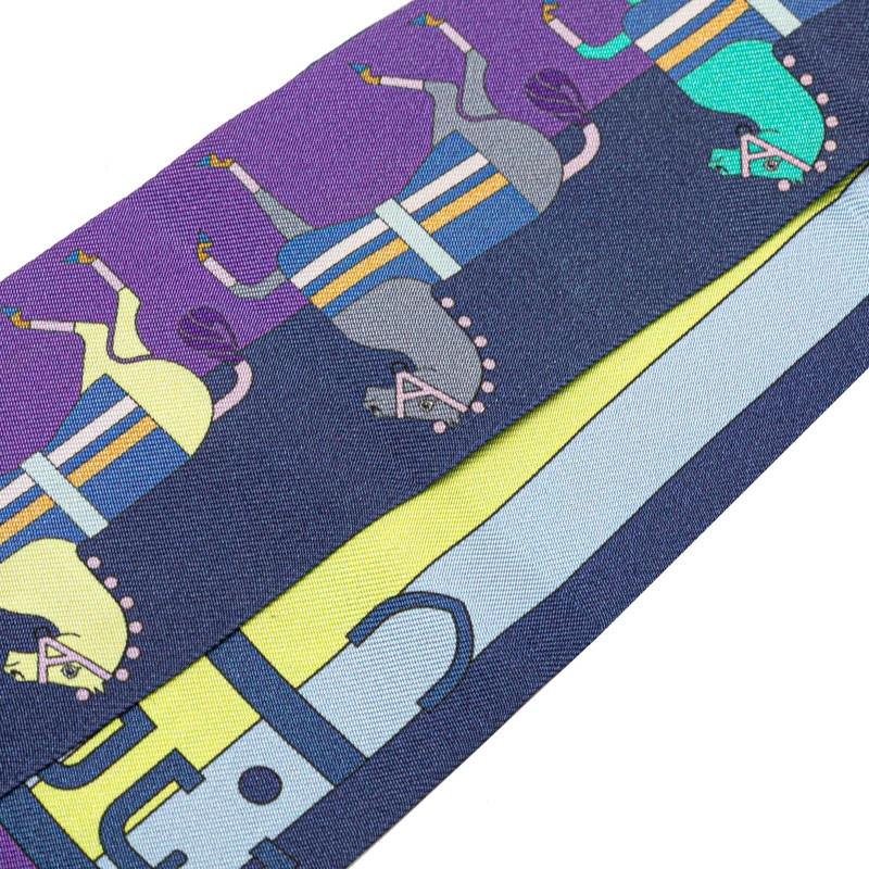 Pre-owned Hermès Twilly Rocabar Horse Scarf in Purple Multicolor Silk for Women.