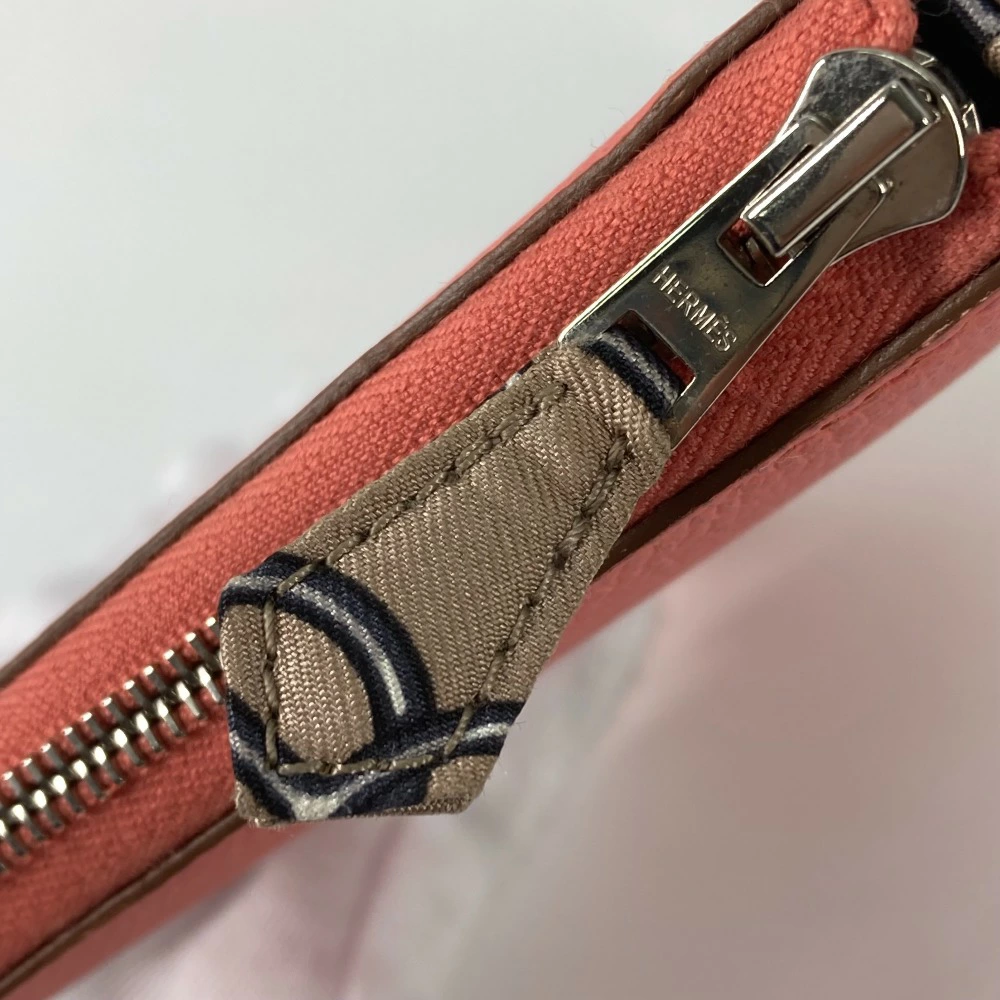 | 商品説明 | 定番商品であるアザップの内側に、エルメス・カレと同じシルク地を使用した、ファッション性の高い長財布です。小銭入れ・カードポケットなども装備され、機能性も優れています。 |