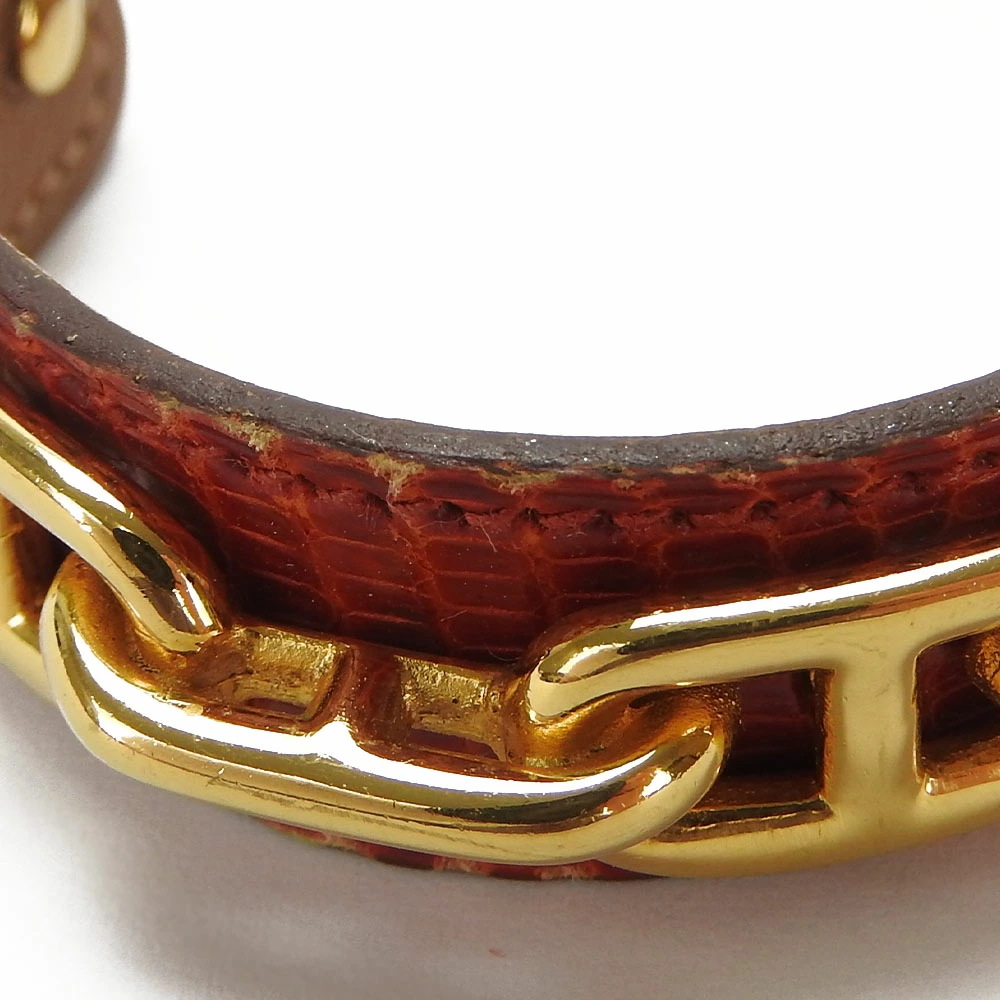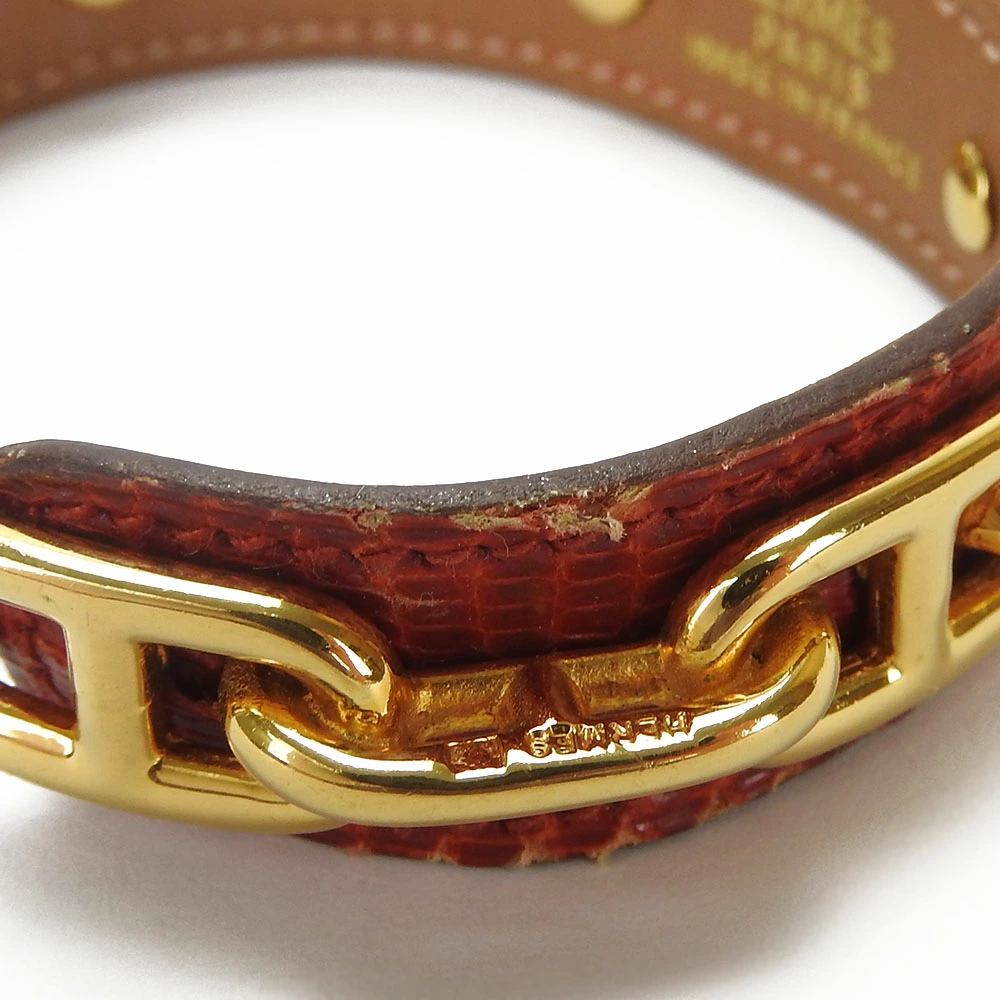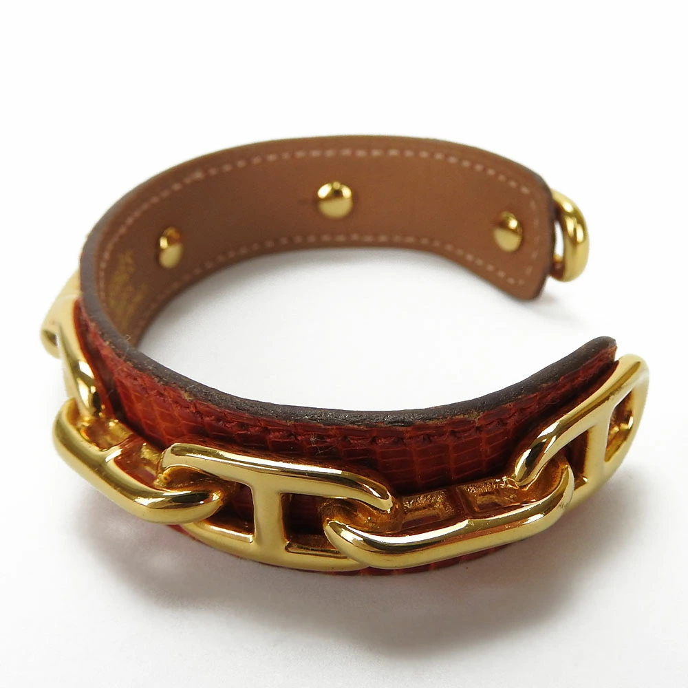 Pre-owned Hermes bangle bracelet, Chaine d'Ancre lizard pattern, red, gold, GP plated, women's.