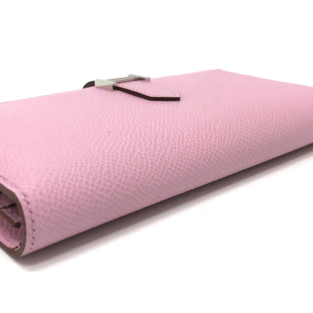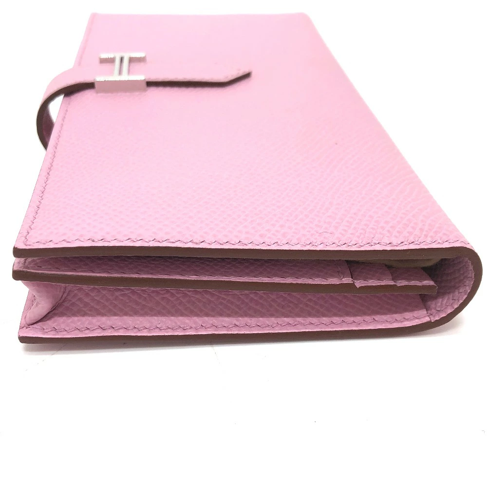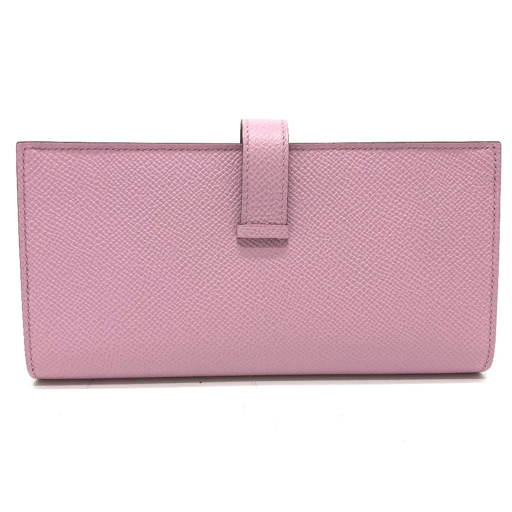 Pre-owned HERMES Bearn soufflet bifold long wallet in Epsom leather (presumably Mauve Silvestre) with H hardware, pink.