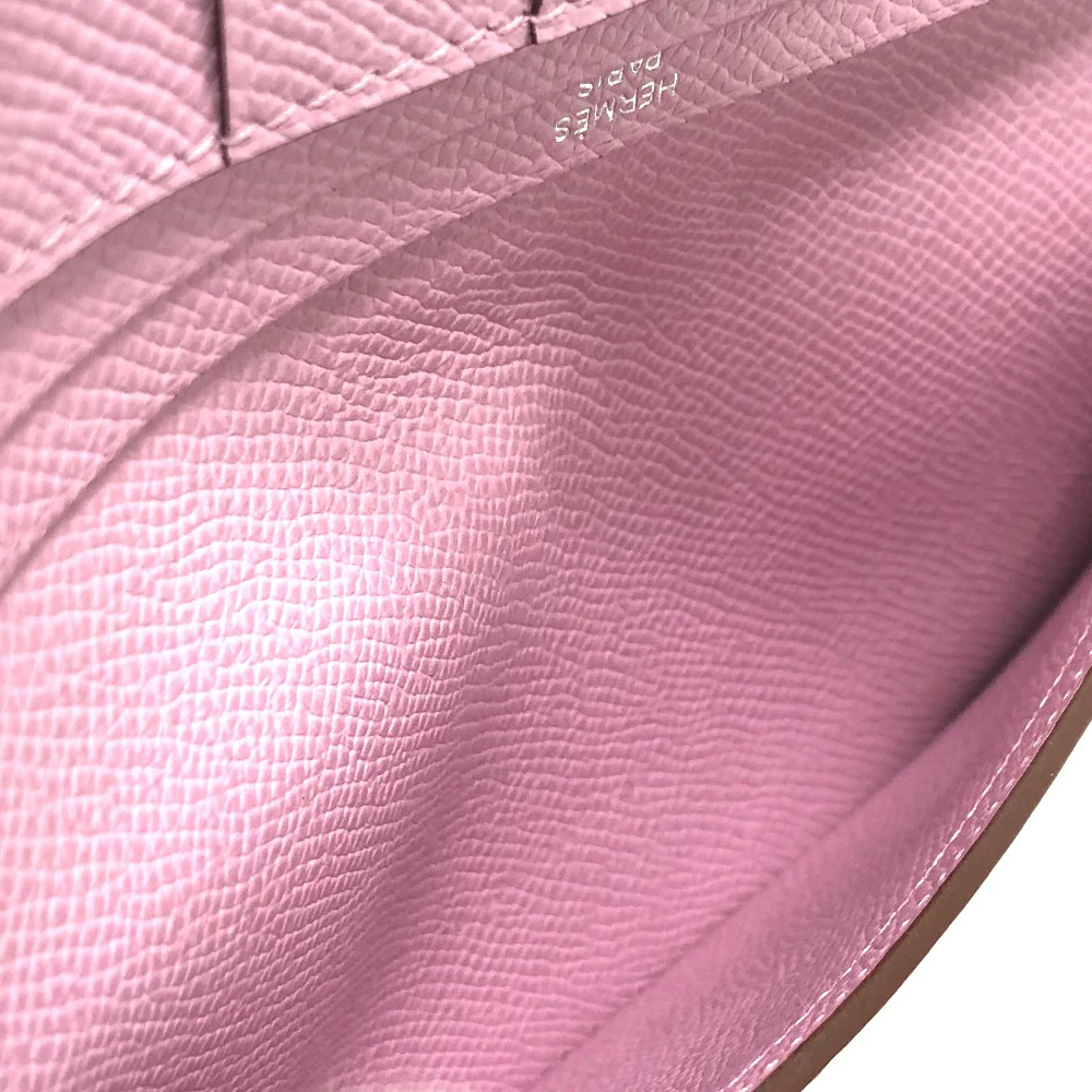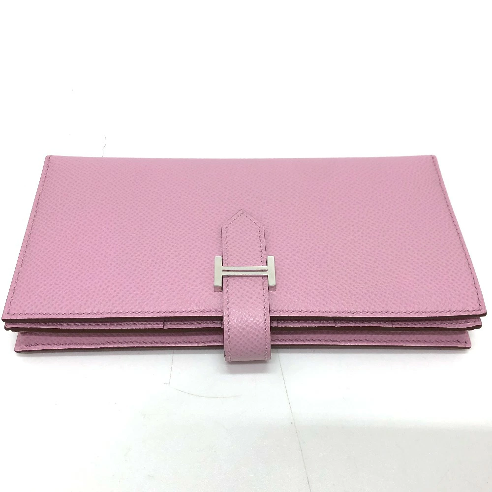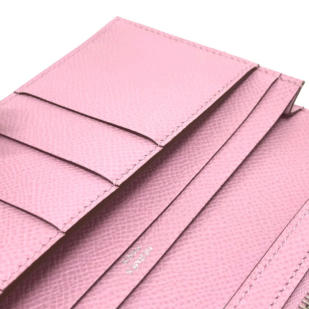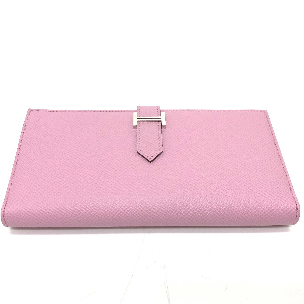 Pre-owned HERMES Bearn soufflet bifold long wallet in Epsom leather (presumably Mauve Silvestre) with H hardware, pink.