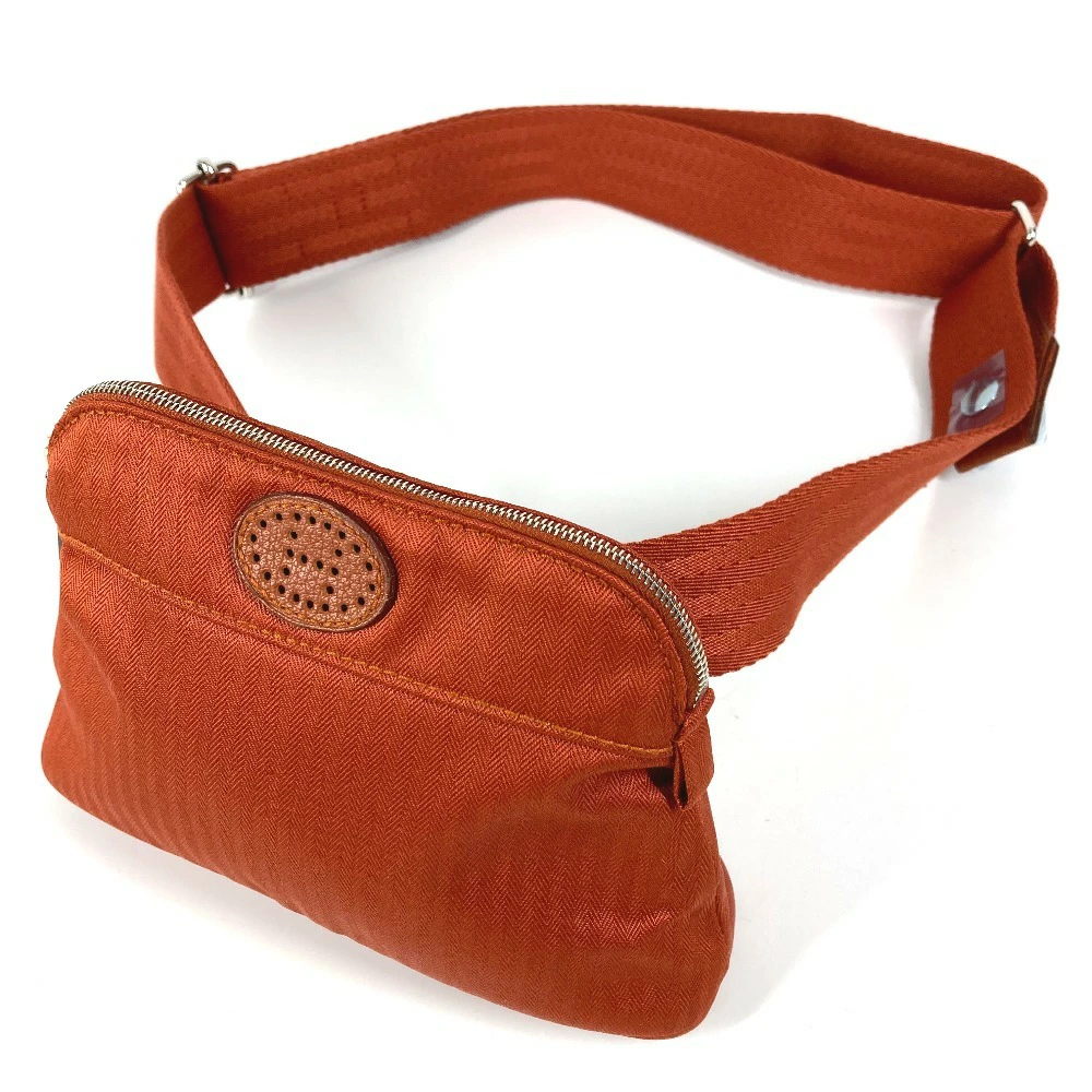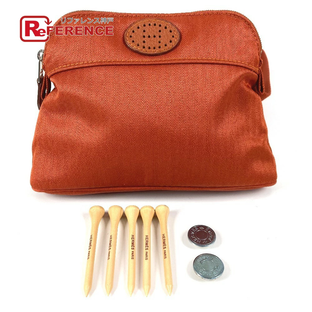 Pre-owned HERMES Bolide Santur shoulder bag with golf pouch, H logo, and Evelyn waist bag in cotton/polyamide. Unisex, orange.