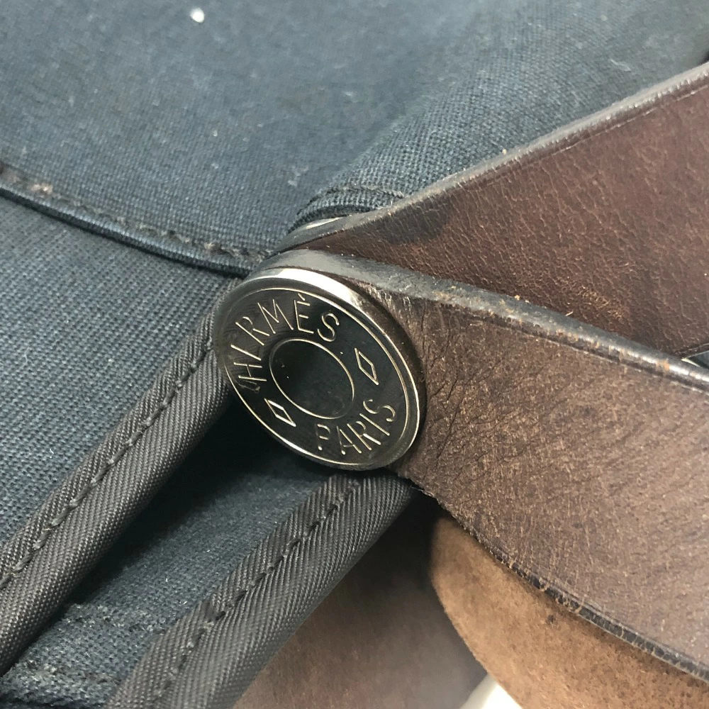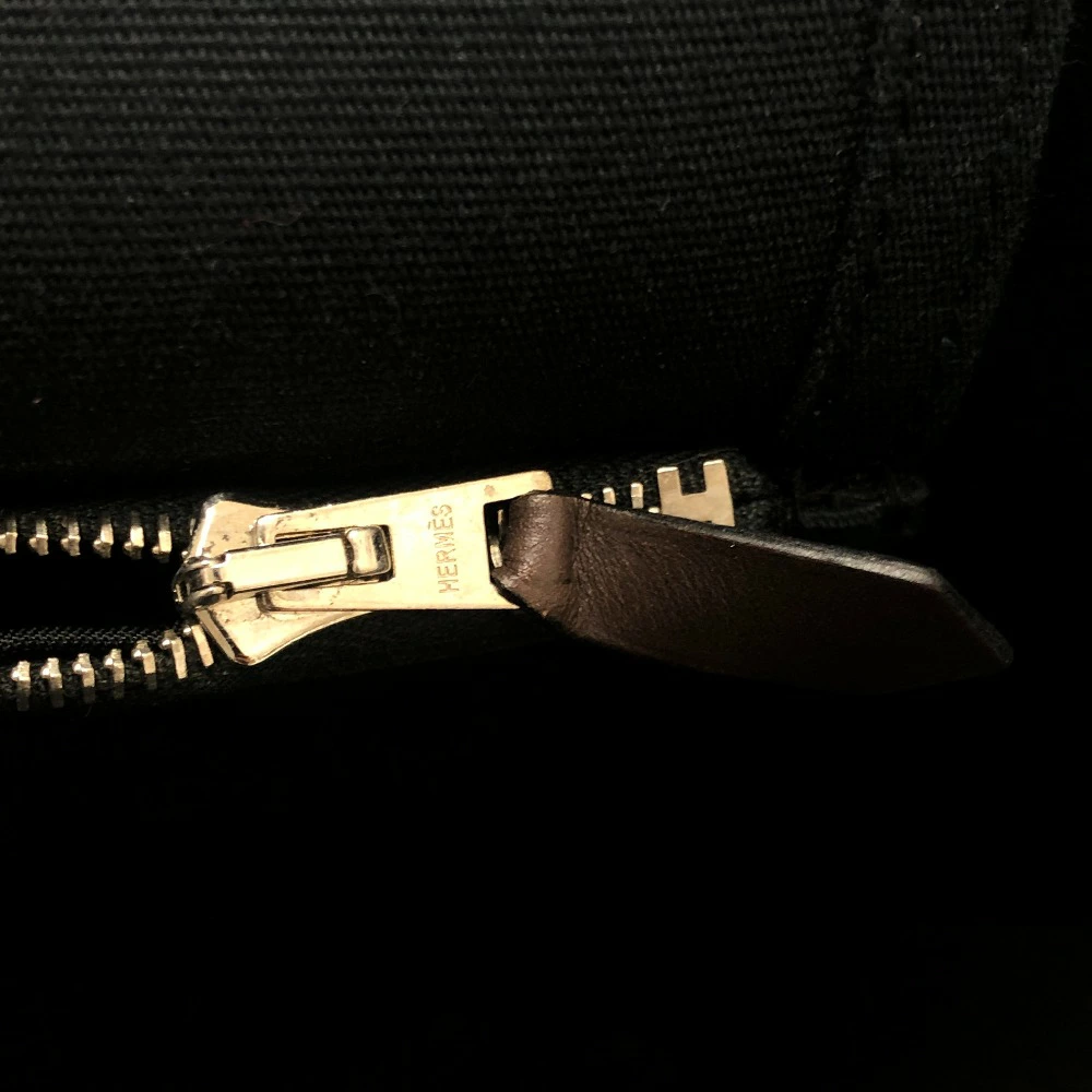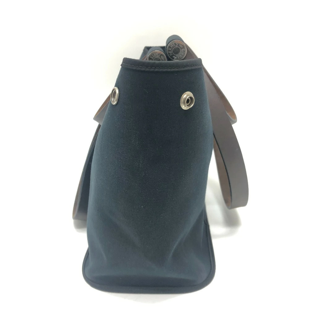 Pre-owned HERMES Cabag Elan PM Shoulder Bag/Tote Bag in Leather/Canvas, Black.