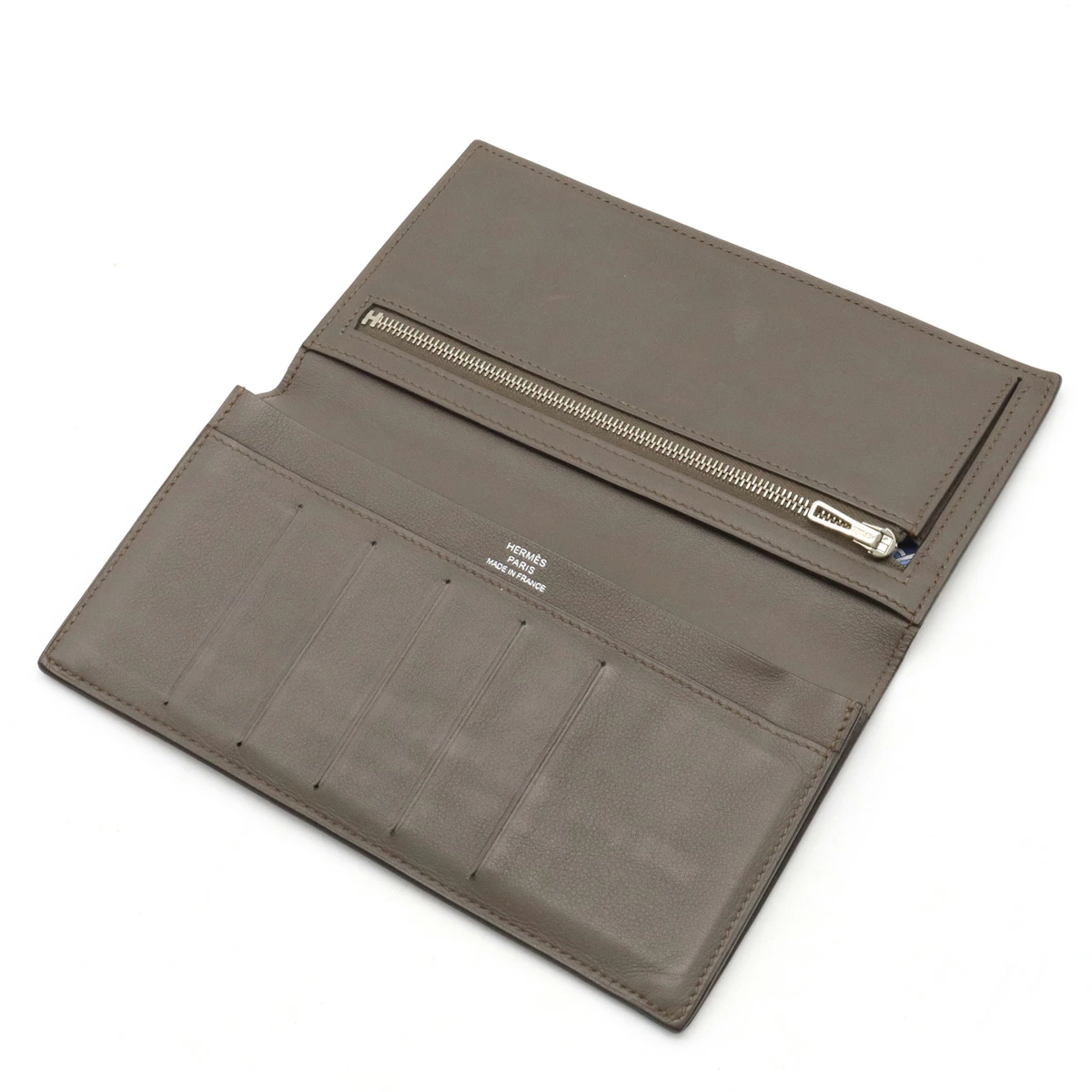 グレージュカラーがお洒落で、柔らかく滑らかな手触りの上質なレザーを贅沢に使用した使いやすい2つ折財布でございます。