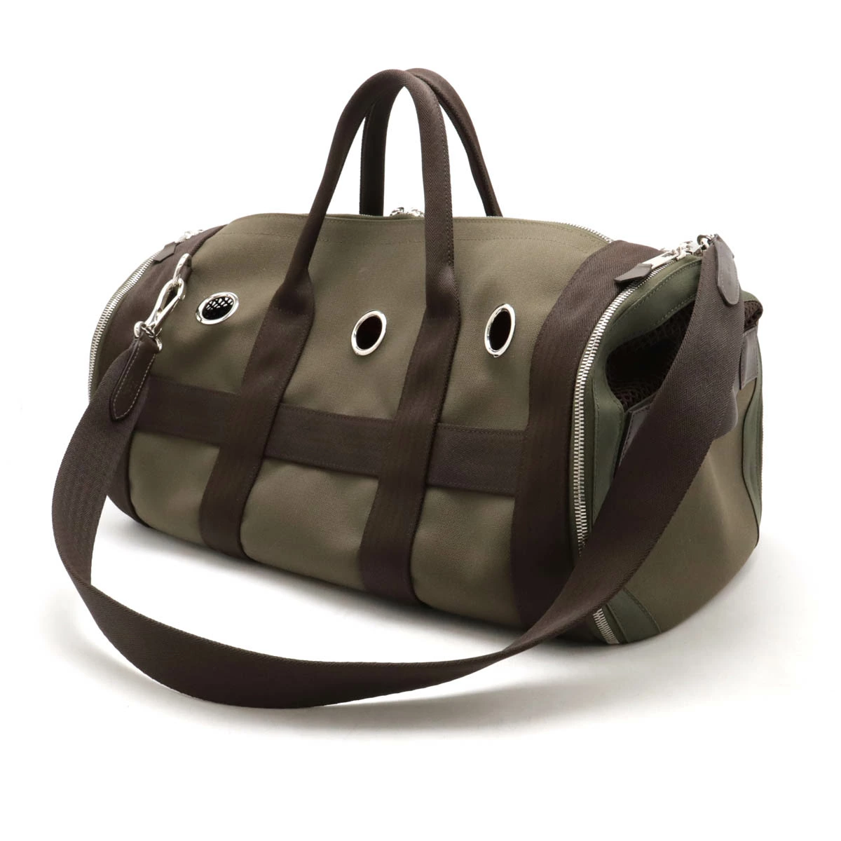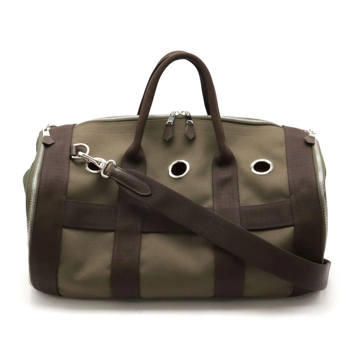 カジュアルながら高級感のあるエルメスのペットキャリーでございます。
