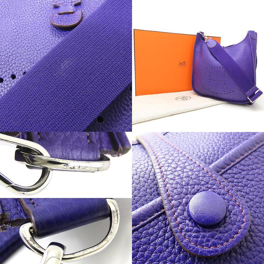 Pre-owned HERMES Evelyn PM3 shoulder bag, 2010, Taurillon Clemence leather, purple, model number 352597, stamped with N.